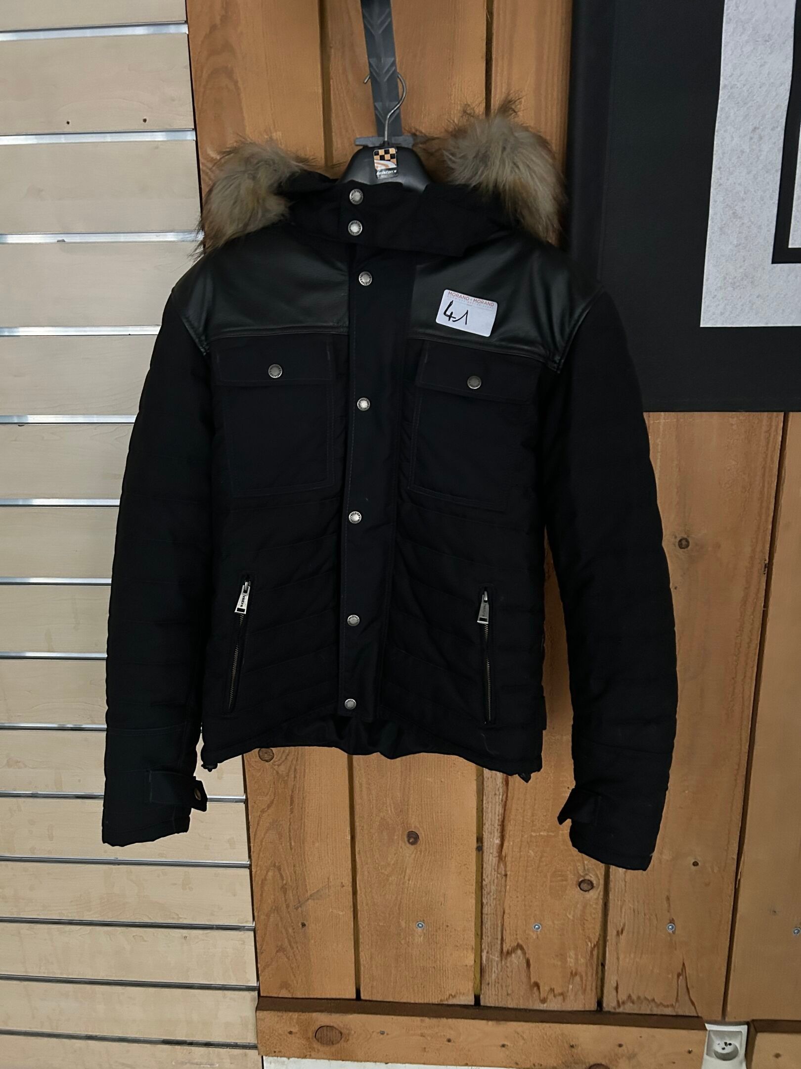 HELSTON 'S Motorcycle Jacket - Size M - Black fabric and lea…