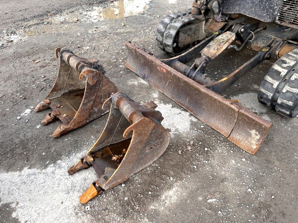 YANMAR - MINI TRACKED SHOVEL WITH VARIABLE TRACK SV 18 - COMMISSIONING STORAGE LOCATION: Rennes - YANMAR - MINI TRACKED SHOVEL WITH VARIABLE TRACK SV 18 - - COMMISSIONING Serial numbers: YCEOSV18PHBV08107 - Description: Yellow - Engine power: 9.5 KW - Diesel - Front blade : 97 + 2 x 17 - 3 buckets : 100 + 40 + 25 - MORIN M0 quick hitch - Hydraulic line - Boom foot offset - 2 forward speeds - Canopy - Battery out of order - Starts - Year : 2017 - Empty weight : 1885