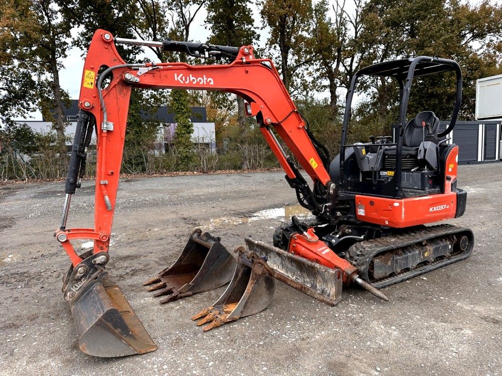 KUBOTA - MINI TRACKED SHOVEL KX037-4 - COMMISSIONING STORAGE LOCATION: Rennes - KUBOTA - MINI TRACKED SHOVEL KX037-4 - - COMMISSIONING Serial numbers: KBCCZ58BJP3A15657 - Description: Orange - Engine power: 17.8 KW - Diesel - 3 buckets : 140 + 60 + 30 - Quick hitch KLAC model E - Hydraulic line - Boom foot offset - Front blade : 156 cm / BRH KUBOTA KM205 brand EPIROC model KM205 Kit type - 2023 - Not tested / Canopy - 2 forward speeds - Starts - Year : 2023 - Empty weight : 3610