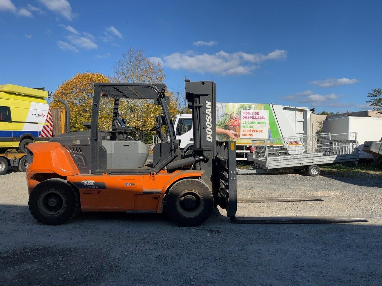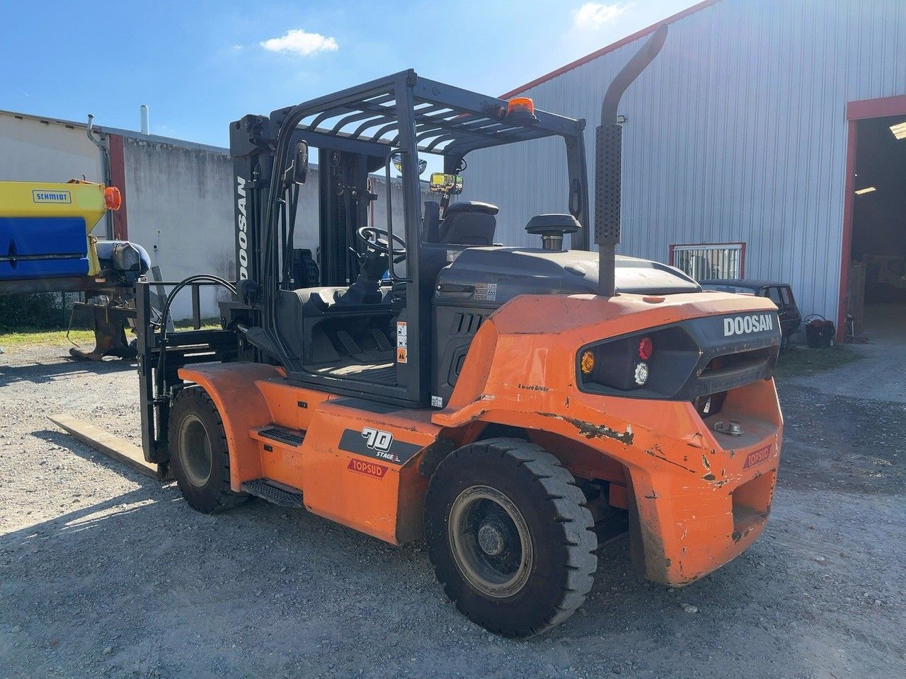 DOOSAN - FRONT END LOADER D70S-9 - COMMISSIONING STORAGE LOCATION: Tours - DOOSAN - FRONT END LOADER D70S-9 - - COMMISSIONING Serial numbers: FD821510401266 - Description: 2500mm FORKS - 7t capacity - 4500mm triplex mast - suspended seat - fork positioner - integrated TDL - Year: 2023 - Empty weight: 0