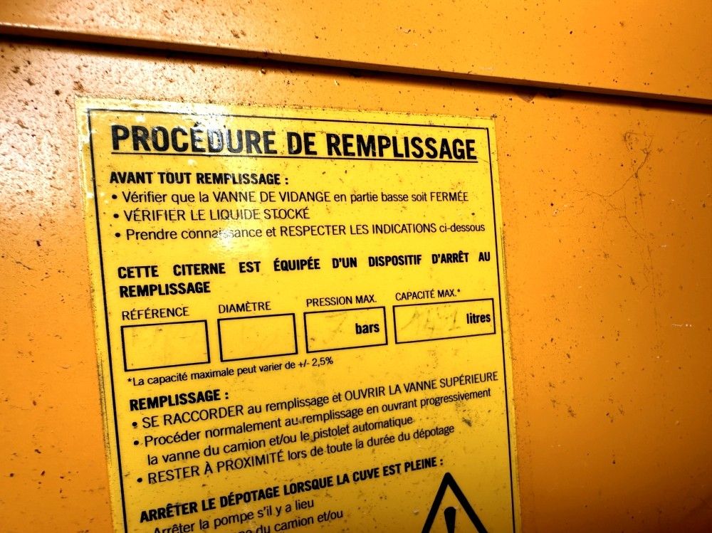 ALOREM - 1400 LITRES FUEL TANK WITH ECE14 PUMP - COMMISSIONING PLACE OF STORAGE: Rennes - ALOREM - 1400 LITRES FUEL TANK WITH ECE14 PUMP - - COMMISSIONING Serial numbers: 33760 - Description: Yellow - TATSUNO pump - Total capacity: 69613 litres - Dispensing nozzle - No key - Equipment not tested - Year: 2017 - Empty weight: 750