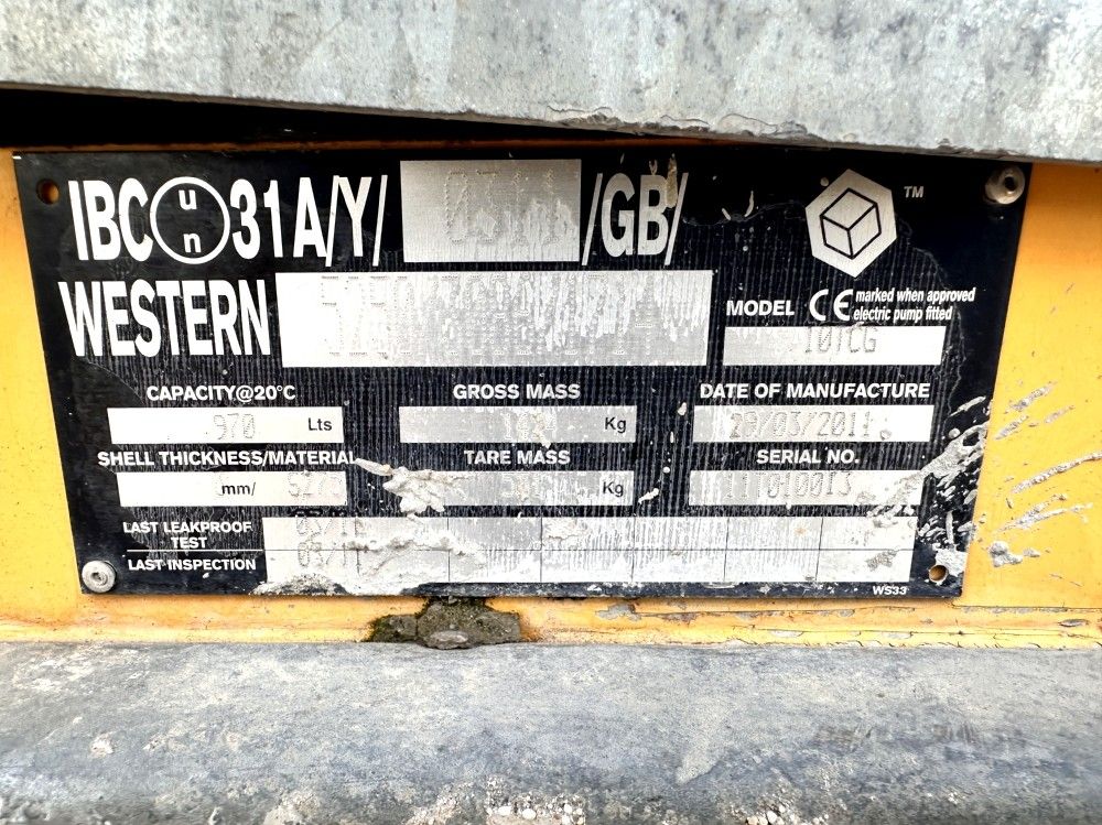 ALOREM - FUEL TANK 1000 LITRES - MODEL 10TCG - COMMISSIONING PLACE OF STORAGE: Rennes - ALOREM - FUEL TANK 1000 LITRES - MODEL 10TCG - - COMMISSIONING Serial numbers: - Description: Yellow - No equipment - Equipment not tested - Year: 2011 - Empty weight: 551