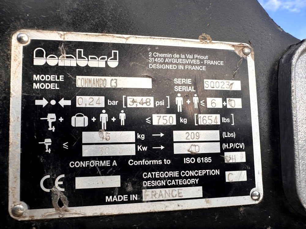 BOMBARD - SEMI-RIGID WITH TRAILER - MODEL : COMMANDO C3 - COMMISSIONING STORAGE LOCATION : Rennes - BOMBARD - SEMI-RIGID WITH TRAILER - MODEL : COMMANDO C3 - - COMMISSIONING Serial numbers : 50023 - Description : Black - Load capacity 750 Kg - Tiller head trailer - Maximum 6 persons - Maximum engine : 30 KW / 40 CV - Category C - No documentation - Deflated floats condition unknown - Year : - Empty weight : 0