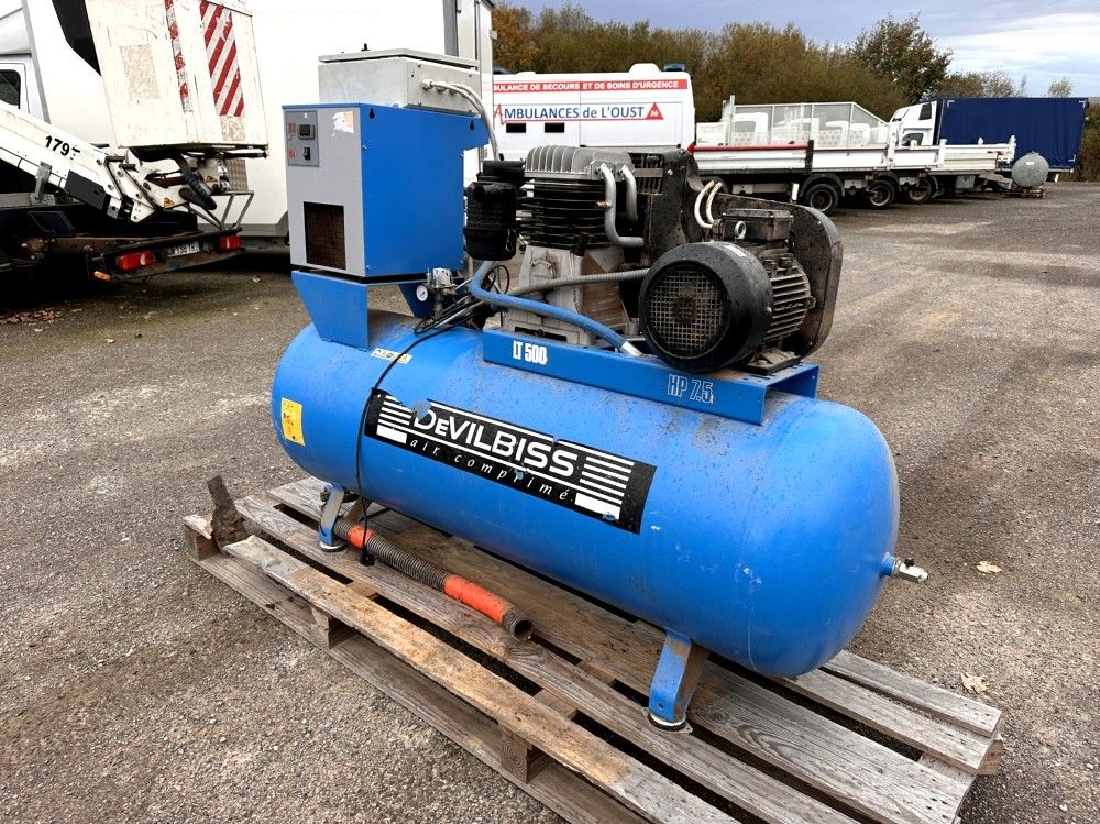 DEVILBISS - WORKSHOP COMPRESSOR 500 LITRES LT500 HP7.5 - COMMISSIONING PLACE OF STORAGE: Rennes - DEVILBISS - WORKSHOP COMPRESSOR 500 LITRES LT500 HP7.5 - - COMMISSIONING Serial numbers: - Description: Electric - 11 bars - Cooler - 380 volts - Tank 2019 - Single cylinder - Equipment not tested - Year: 2018 - Empty weight: 0