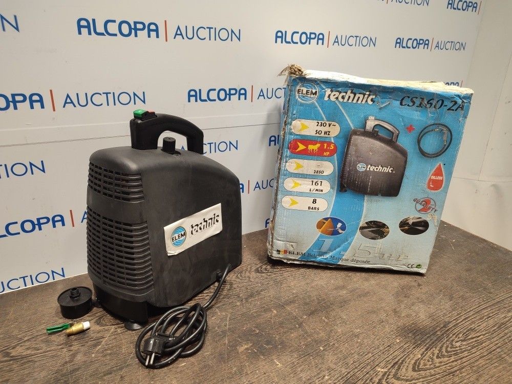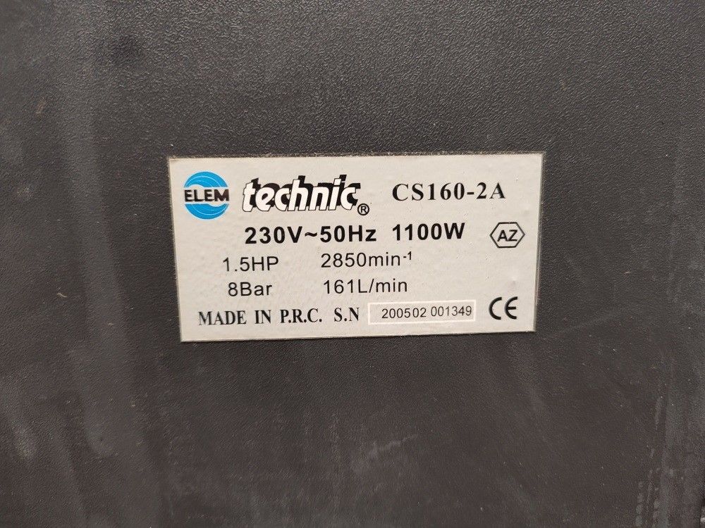 ELEM - COMPRESSOR CS1602A - COMMISSIONING ELEM - COMPRESSOR CS1602A - - COMMISSIONING Serial numbers: - Description: 2005 - 230 V - 1100 W - Accessories not supplied - Power on ok - Not tested - Year: - Empty weight: 0