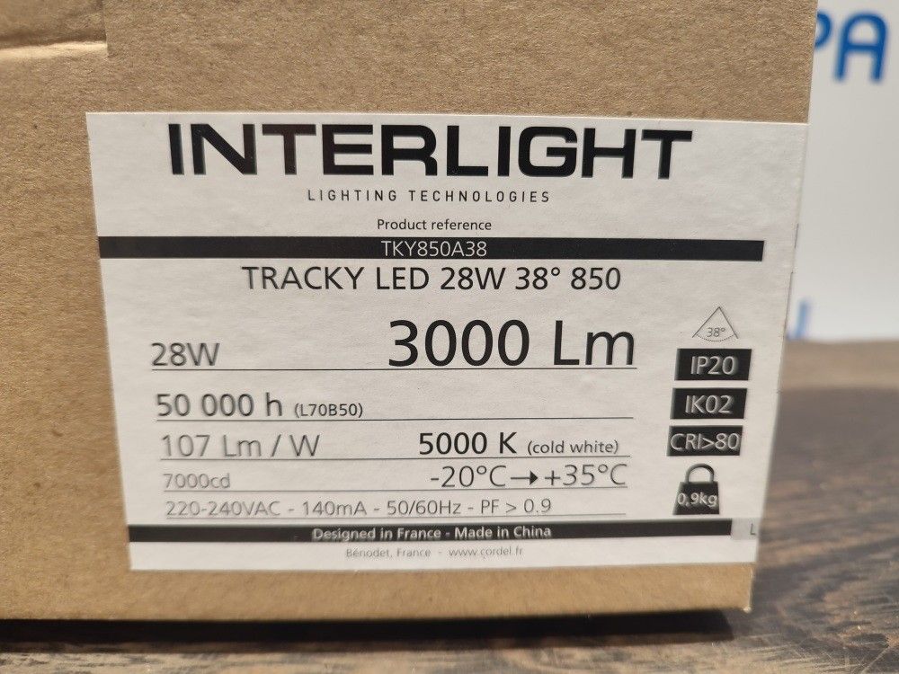 INTERLIGHT - 12 SPOTS RAIL TRACKY LED - COMMISSIONING INTERLIGHT - 12 SPOTS RAIL TRACKY LED - - COMMISSIONING Serial numbers : - Description : Reference : TKY850A38 - 28 W - 3 000 LM - 500 K - Year : - Empty weight : 0