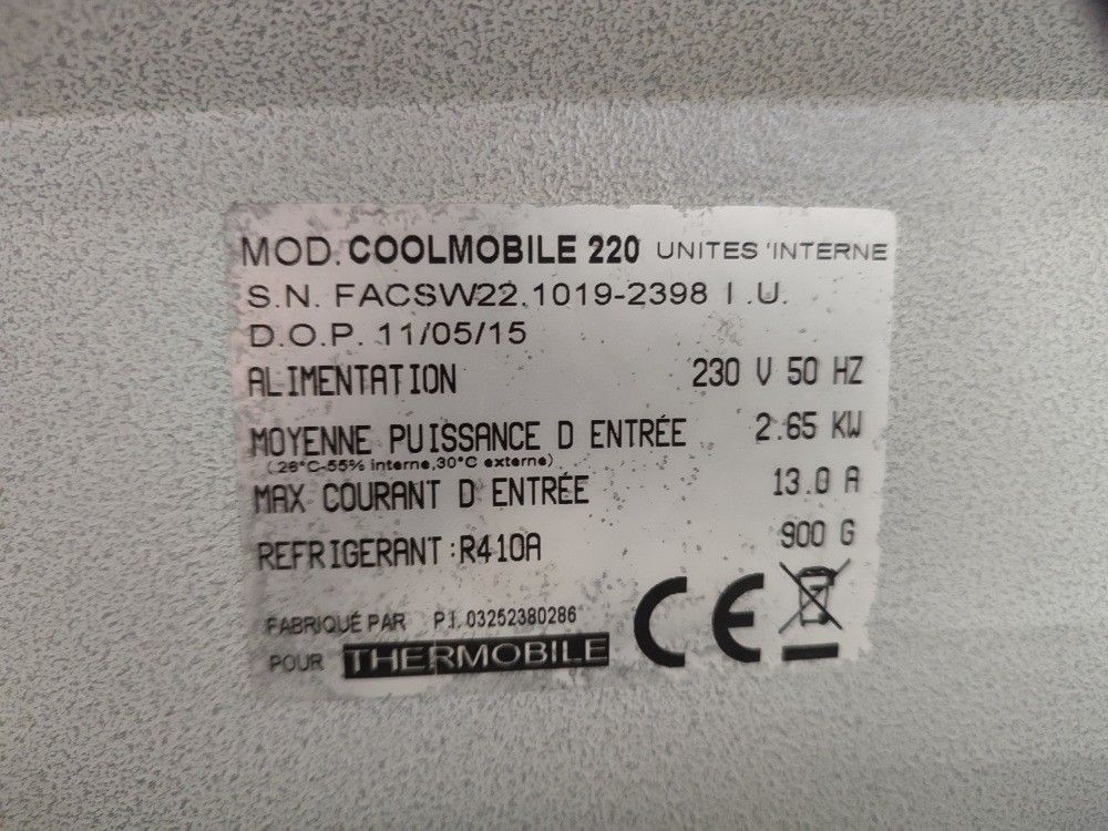 THERMOBILE - PROFESSIONAL AIR CONDITIONER WITH OUTSIDE UNIT - COOL MOBILE 220 - COMMISSIONING THERMOBILE - PROFESSIONAL AIR CONDITIONER WITH OUTSIDE UNIT - COOL MOBILE 220 - - COMMISSIONING Serial numbers : - Description : 2015