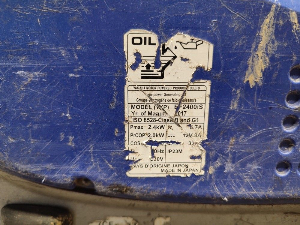 YAMAHA - ELECTRONICALLY CONTROLLED GENERATED GENERATOR - 2 KVA - 230 V - EF 2400 IS - COMMISSIONING YAMAHA - ELECTRONICALLY CONTROLLED GENERATED GENERATOR - 2 KVA - 230 V - EF 2400 IS - - COMMISSIONING Serial numbers: - Description: 2017 - Power generation does not work - Starts - Year: - Empty weight: 0