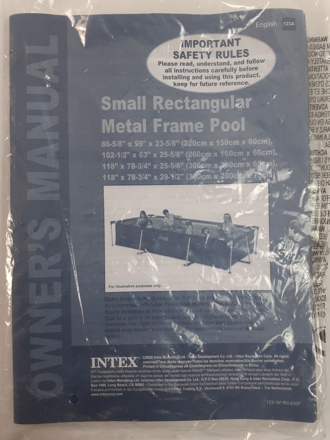 INTEX Small Rectangular Metal Frame Pool - Above ground rectangular metal frame pool - With instruction manual and spare parts - See photos for details - NEW - VAT recoverable