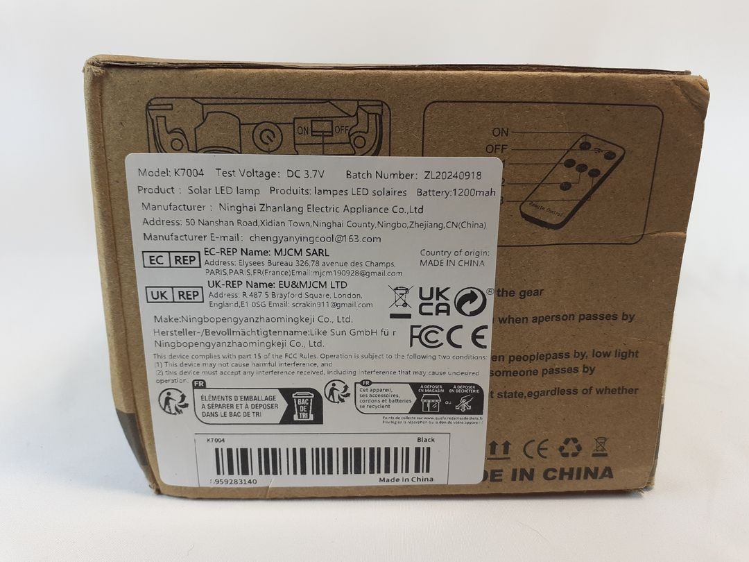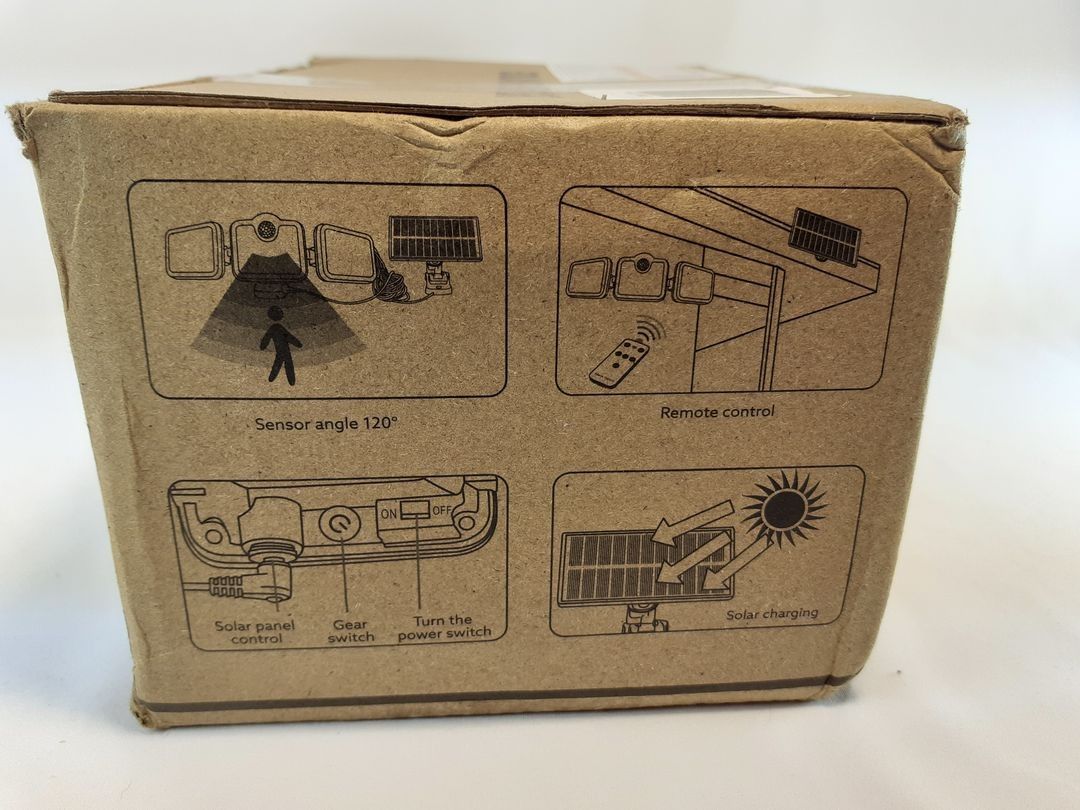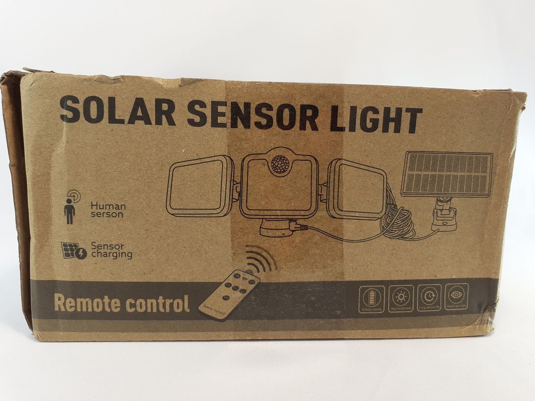 SOLAR SENSOR LIGHT - Solar floodlight with motion detector and remote control - Model K7004 - 1200mAh battery - DC 3.7V - Separate solar panel - See photos for details - NEW - VAT refundable