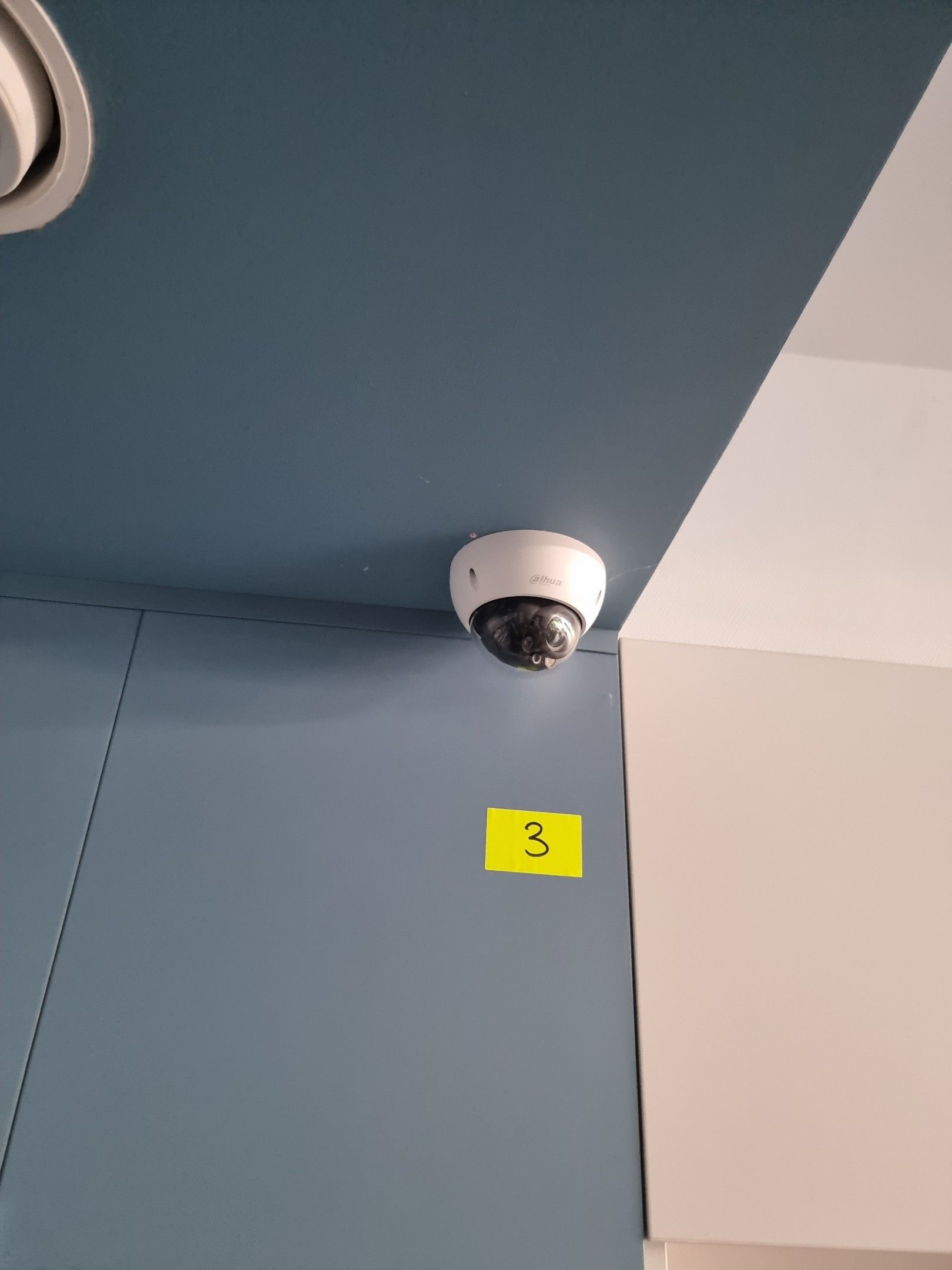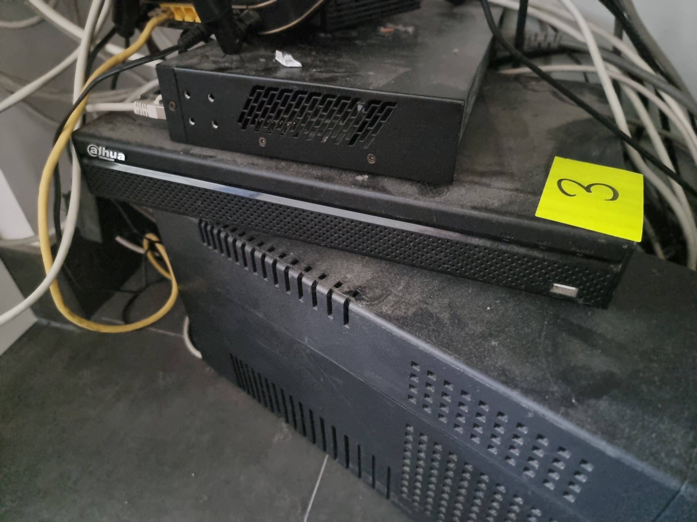 Video surveillance system comprising an ALHUA recorder, a control screen and 2 cameras.