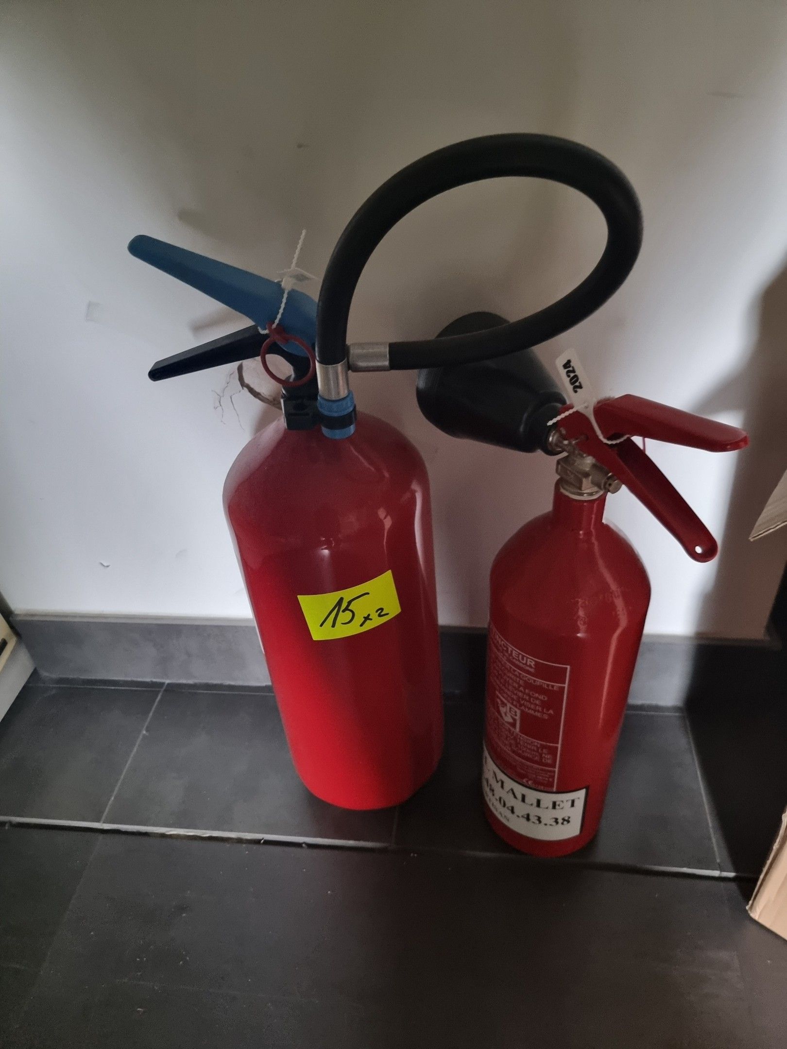 2 fire extinguishers, 6 litres water spray and 2 kg powder
