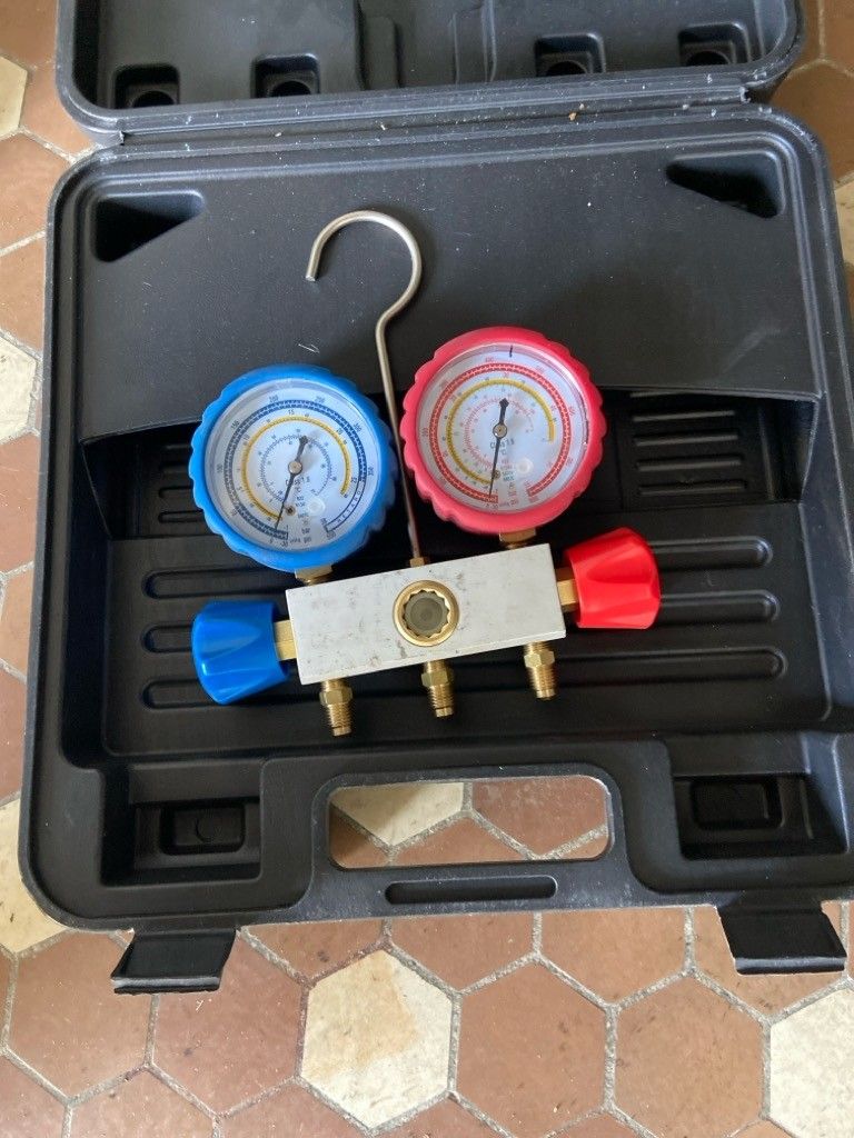 Manifold type VMG-2N-R410A diagnostic tool for refrigeration/air conditioning systems in its case