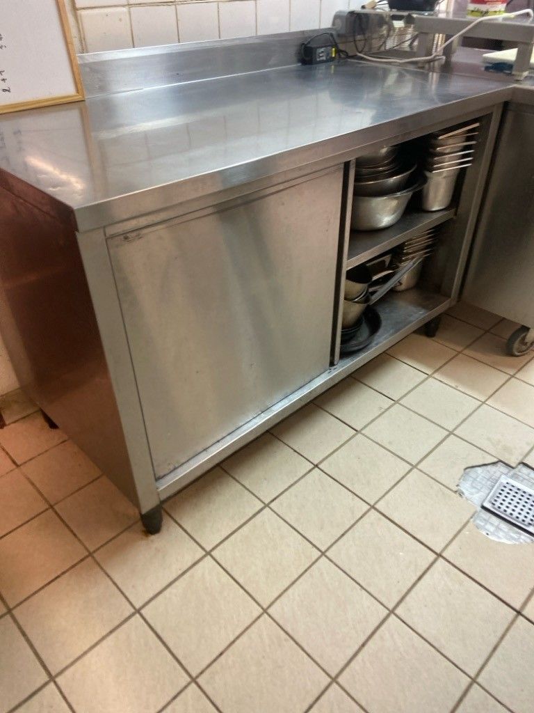 All stainless steel professional kitchen base unit with 2 sliding doors and brace