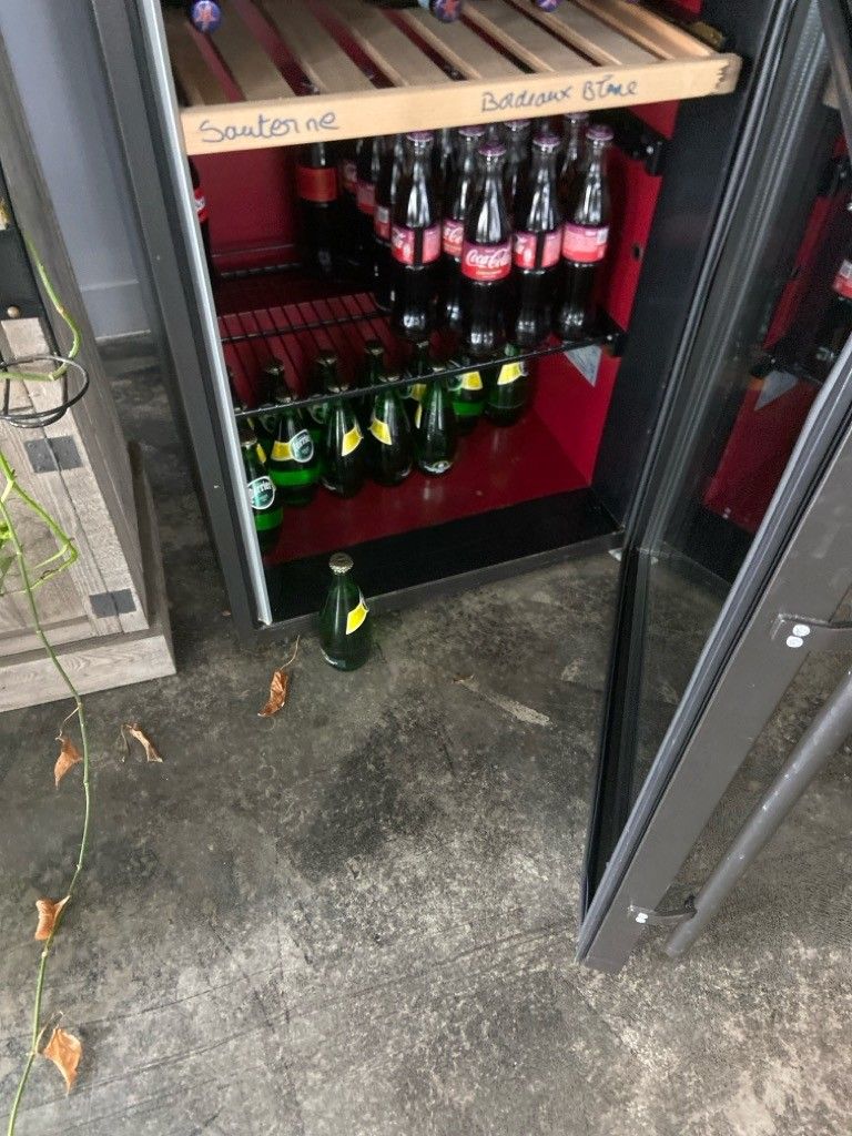 Stock of soft drinks including Coca-Cola, Perrier, Fanta, etc.