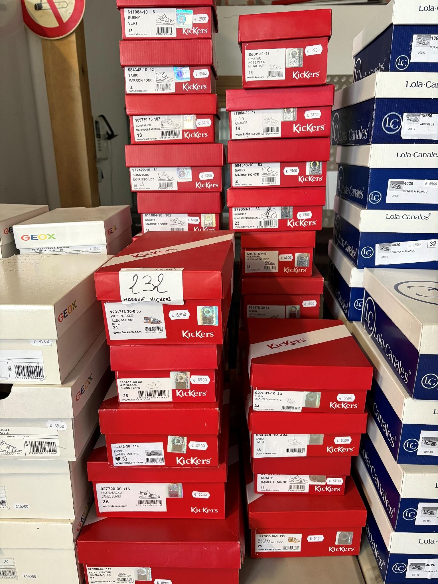 Lot of approximately 28 pairs of Kickers children's shoes.
