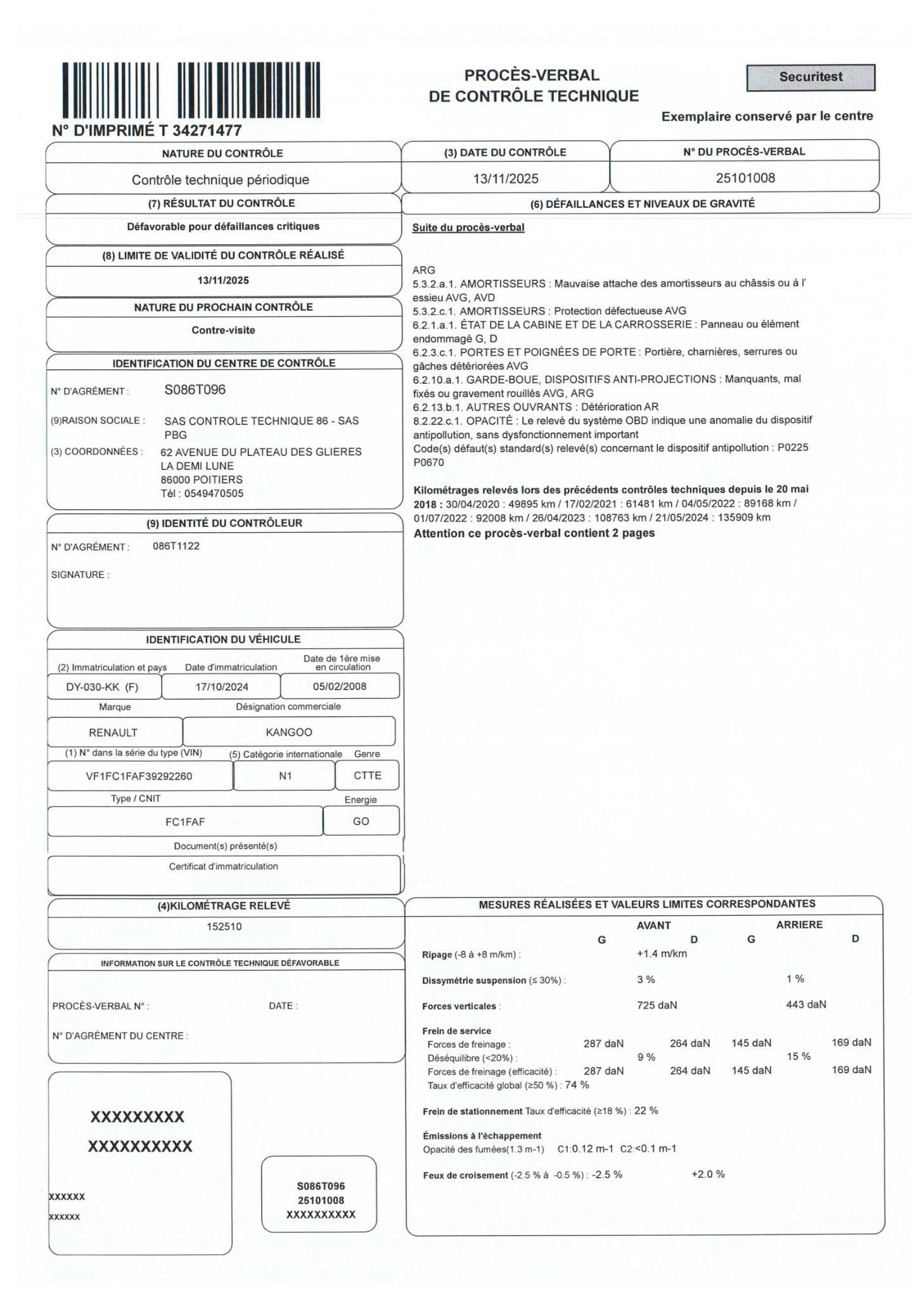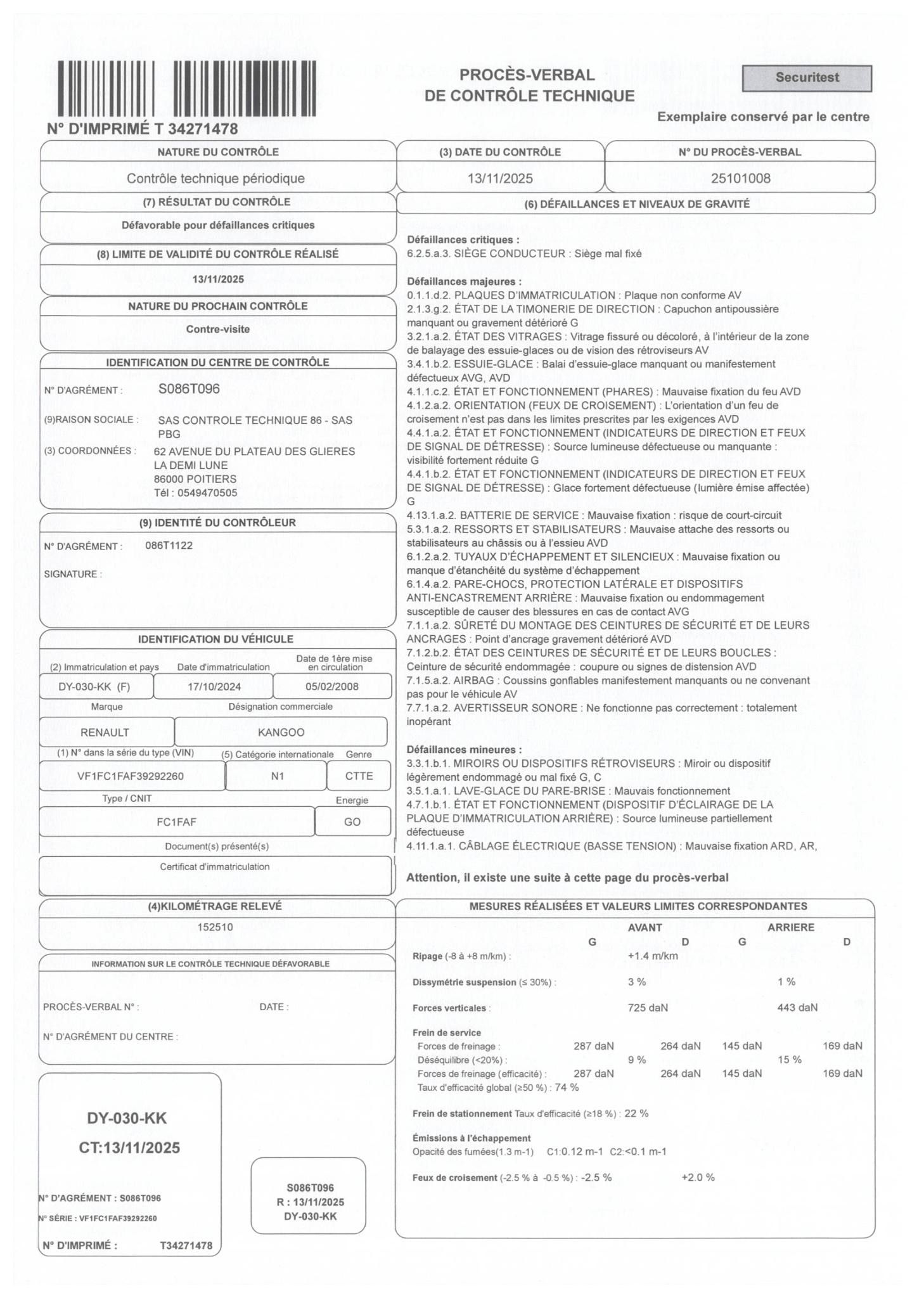 ctte RENAULT Kangoo Express I Fourgon Phase 2 1.5 dCi 61 cv