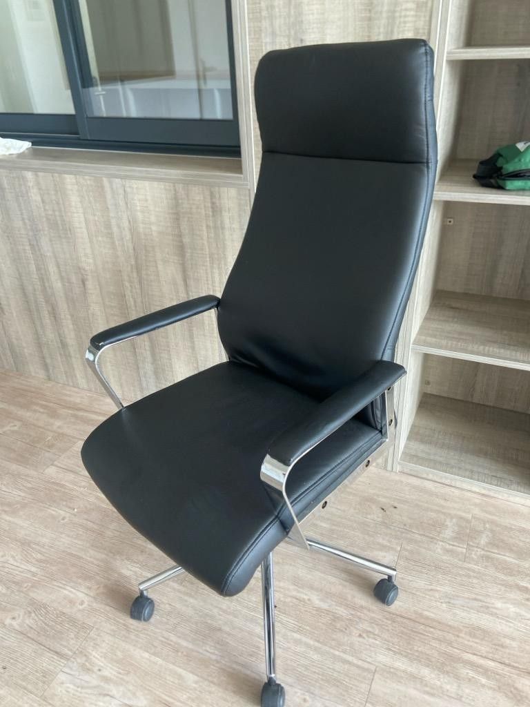 Black office chair, high back, leatherette upholstery, chrom…