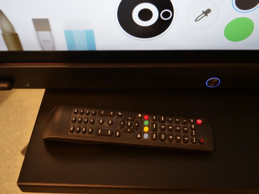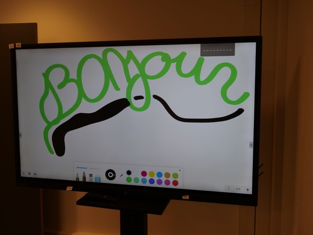 1 SPEECHI INTERACTIVE TOUCHSCREEN, SPEECHI TOUCH ST65UHD-AND-HP-005, WITH REMOTE CONTROL, 2 STYLI, FREE-STANDING ON 1ST FLOOR, BY WIDE STAIRCASE,