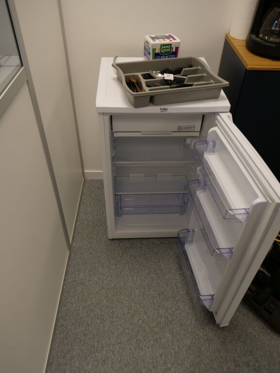 1 TABLE TOP BEKO REFRIGERATOR WITH CONTAINER, SIZE 48 x 48 x 82, + 1 SMALL DISHWARE SET, + 1 NUPRO APIRATOR, PRP180, + 1 MOULINEX COFFEE MAKER
