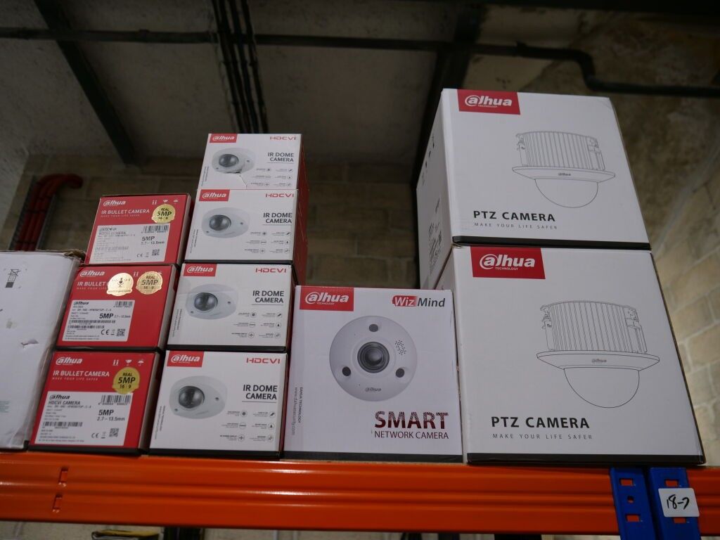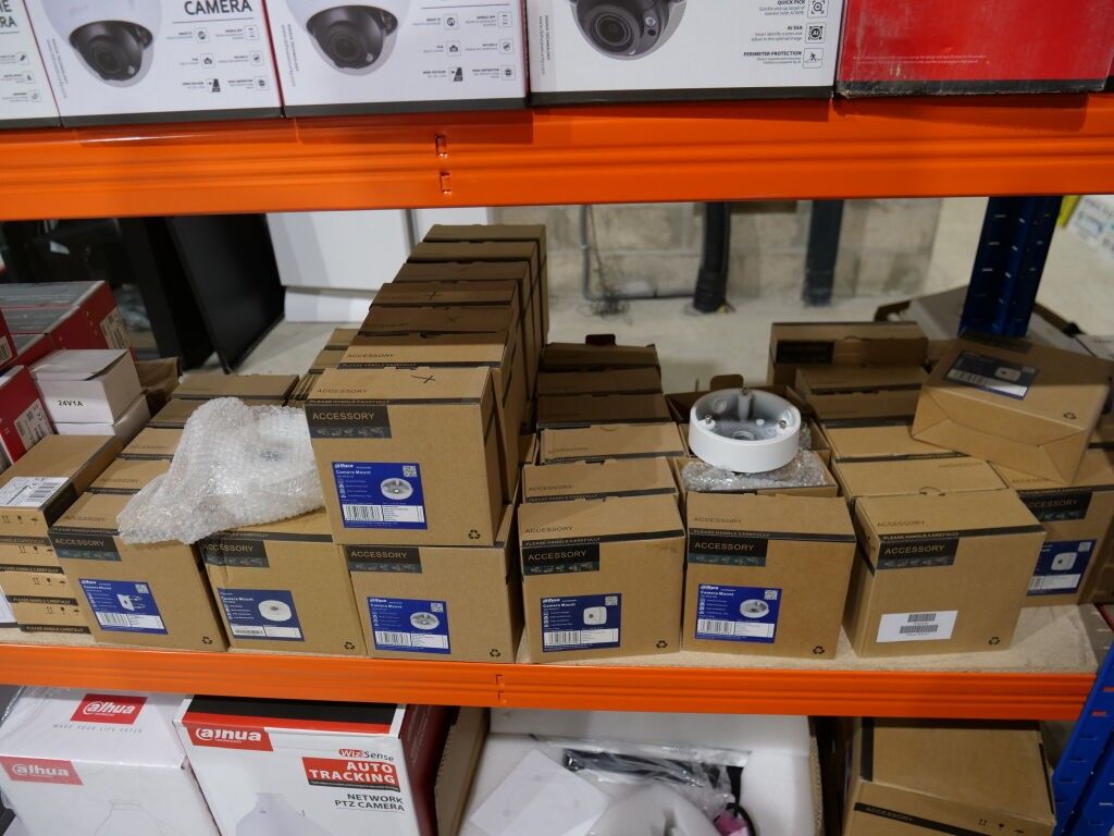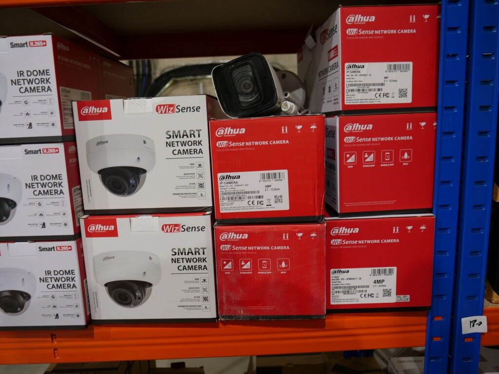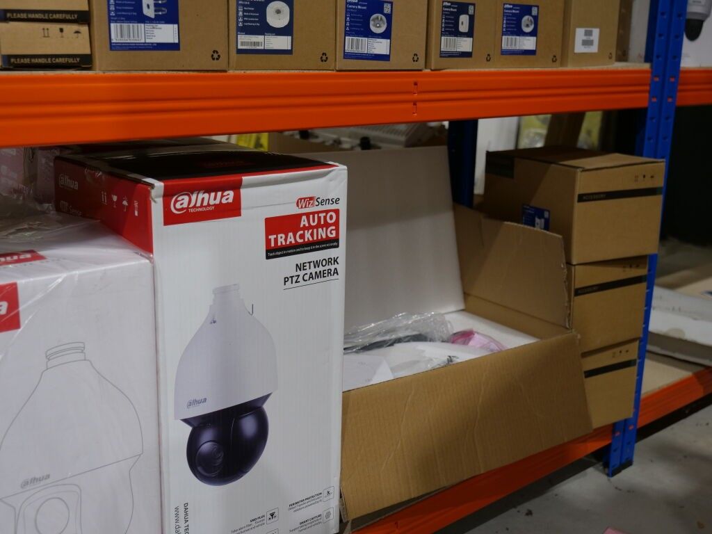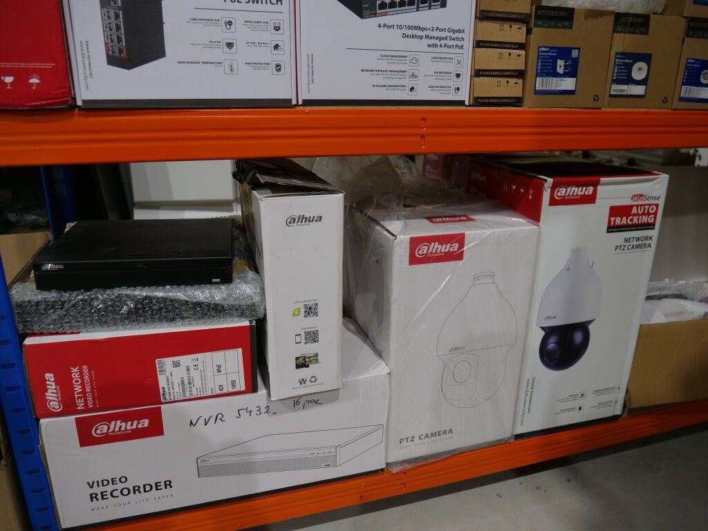 1 LARGE SET OF ALHUA VIDEO SURVEILLANCE EQUIPMENT INCLUDING 70 DIFFERENT NETWORK CAMERAS WITH AND WITHOUT BRACKETS, AROUND 9 POE SWITCHES, 4 ALHUA PTZ CAMERAS, 1 ALHUA NVR 5432 RECORDER, 1 NVR 104 RECORDER,