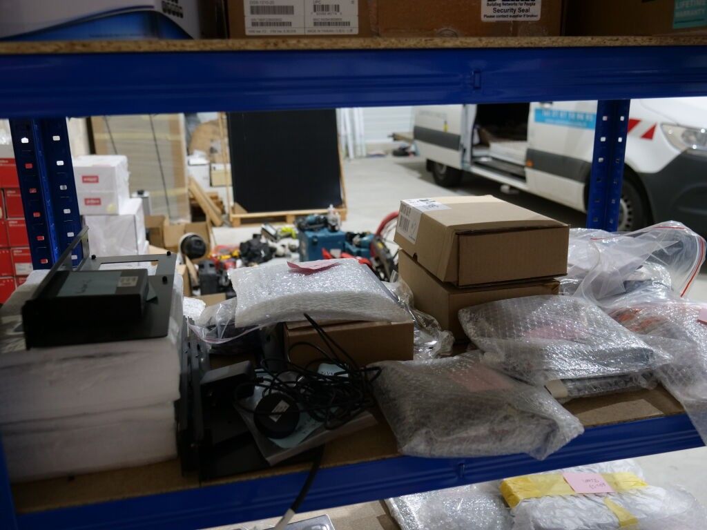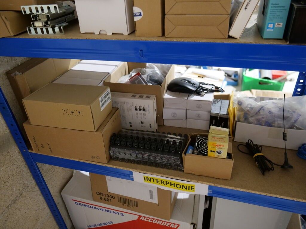 CONTAINED ON 2 RACKS, 1 SMALL SET OF ACCESSORIES FOR VIDEO SURVEILLANCE AND TRANSMISSION, INCLUDING: MULTIPLE SOCKETS, CABLES, ANTENNAS, SWITCHES, BANDIT HY3 SMOKE CARTRIDGES, ELECTRICAL BOXES...