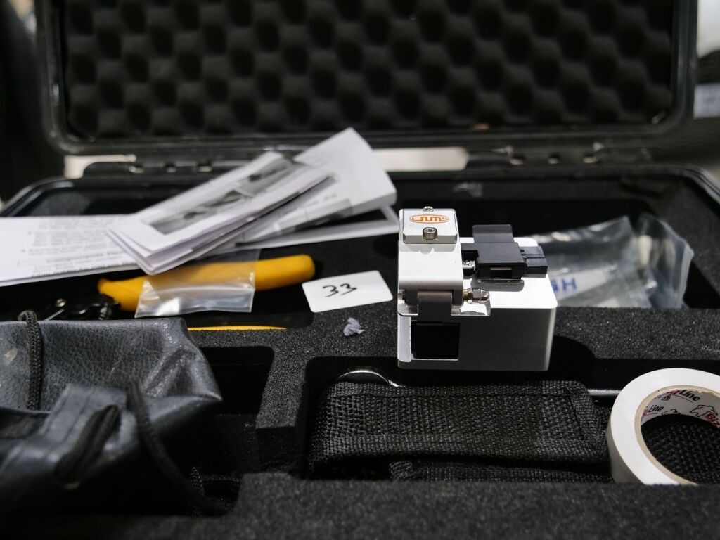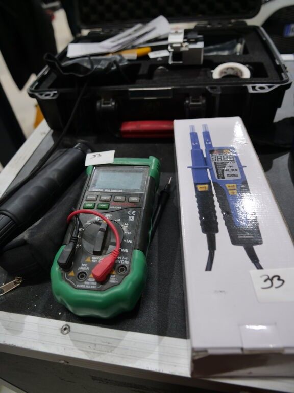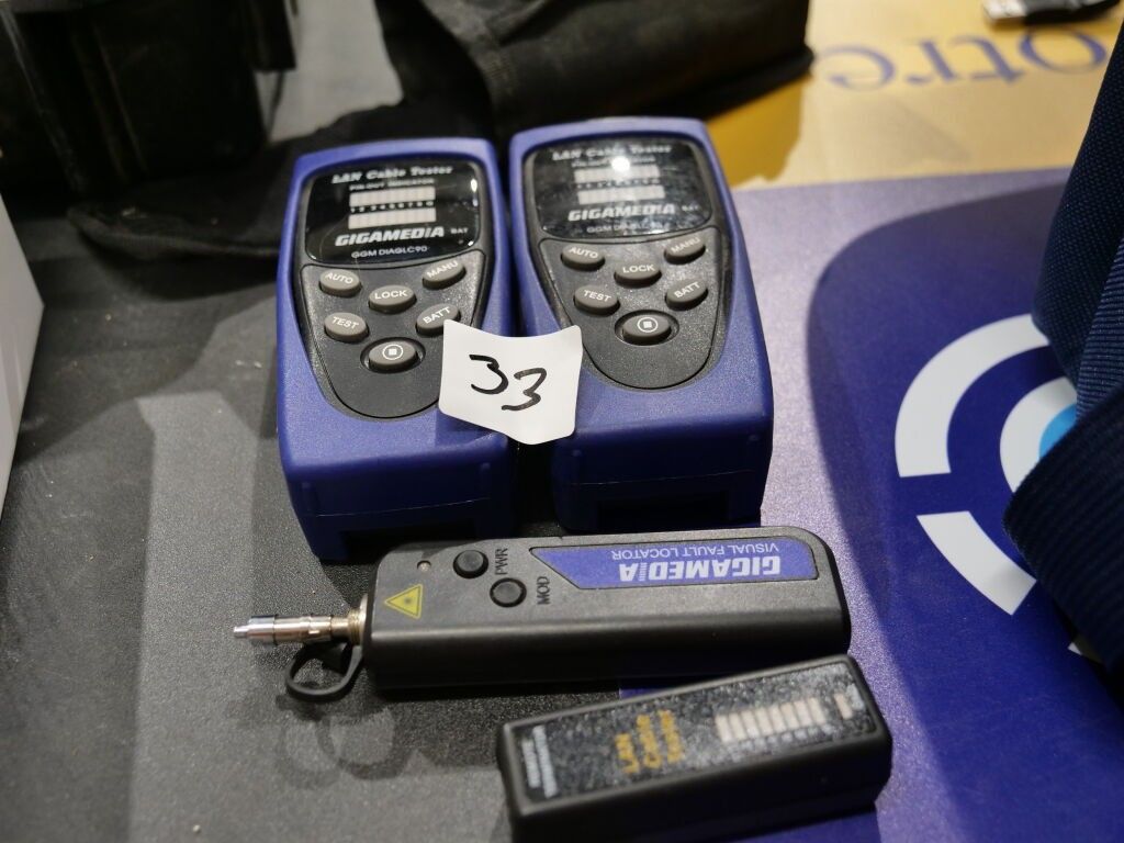 1 SMALL SET OF MEASURING EQUIPMENT INCLUDING: 1 EUROTEST MW9660 COMBO, WITH CONNECTORS, 1 GIGAMEDIA NETWORK CABLE TESTER, 1 SEFRAM VOLTAGE TESTER, 1 GREEN MULTI-METRE WITH NO VISIBLE MARK, 1 MICRO SCOPE FOR OPTICAL FIBRE, + 1 CASE THAT CAN BE INCOMPLETE SENKO XP FITPLUS FOR SOLDERING OPTICAL FIBRE.