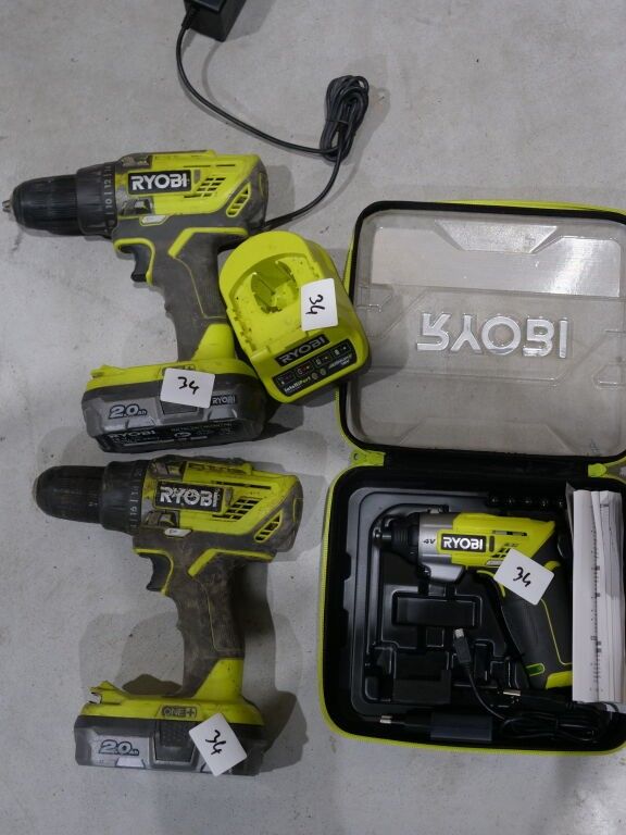 3 RYOBIS SCREWDRIVERS, WITH 2 BATTERIES AND 1 CHARGER,