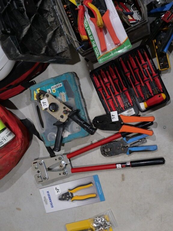 1 SMALL SET OF HAND TOOLS: SCREWDRIVER, HOLE SAW, NEEDLES, CRIMPING PLIERS, SAFETY EQUIPMENT
