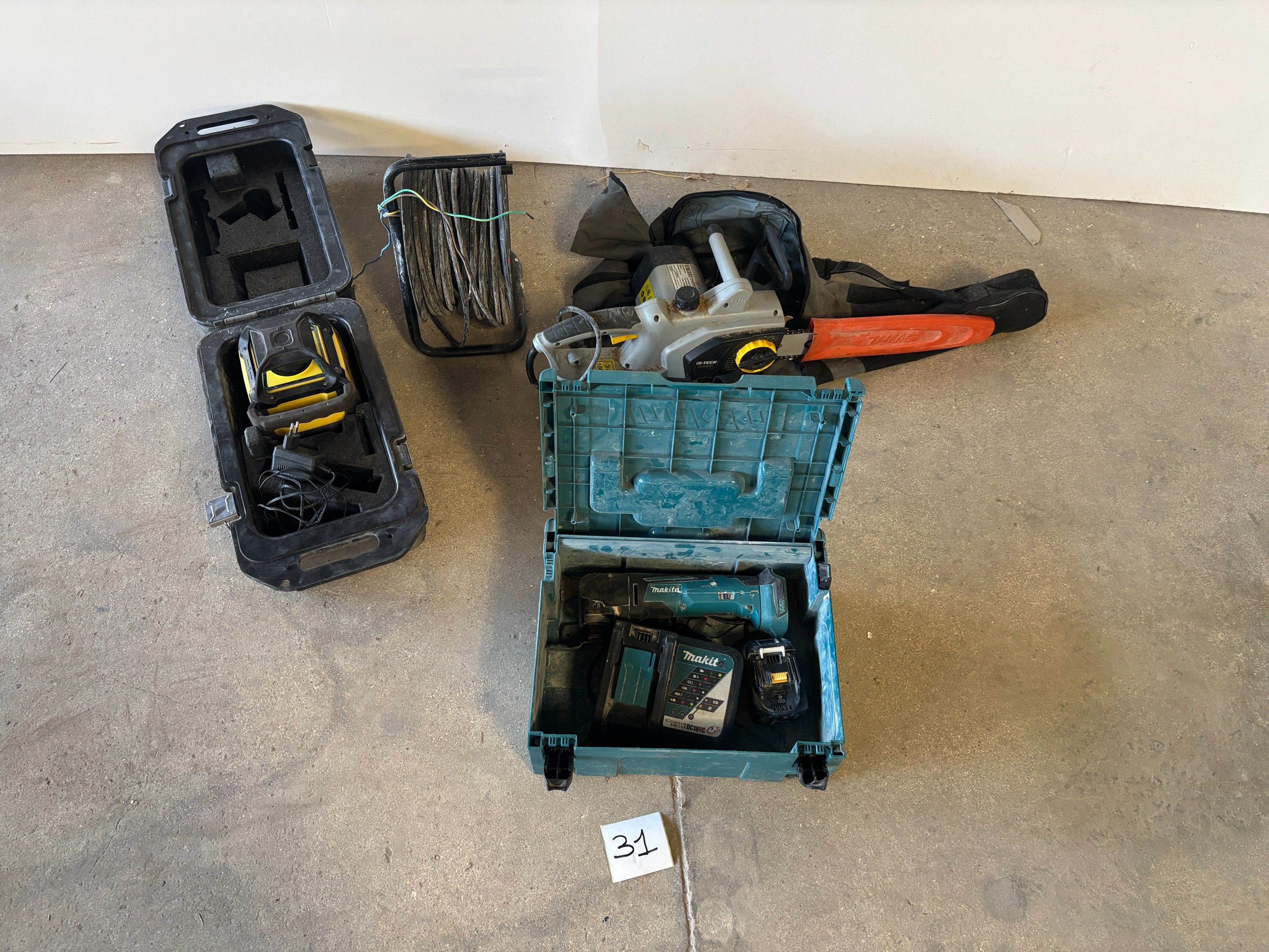 Suite LJS SAS FDG BATIMENT - 1 MAKITA multi-tool with charger and battery + 1 ID-Tech electric chainsaw + 1 electric winder + 1 STANLEY laser level
