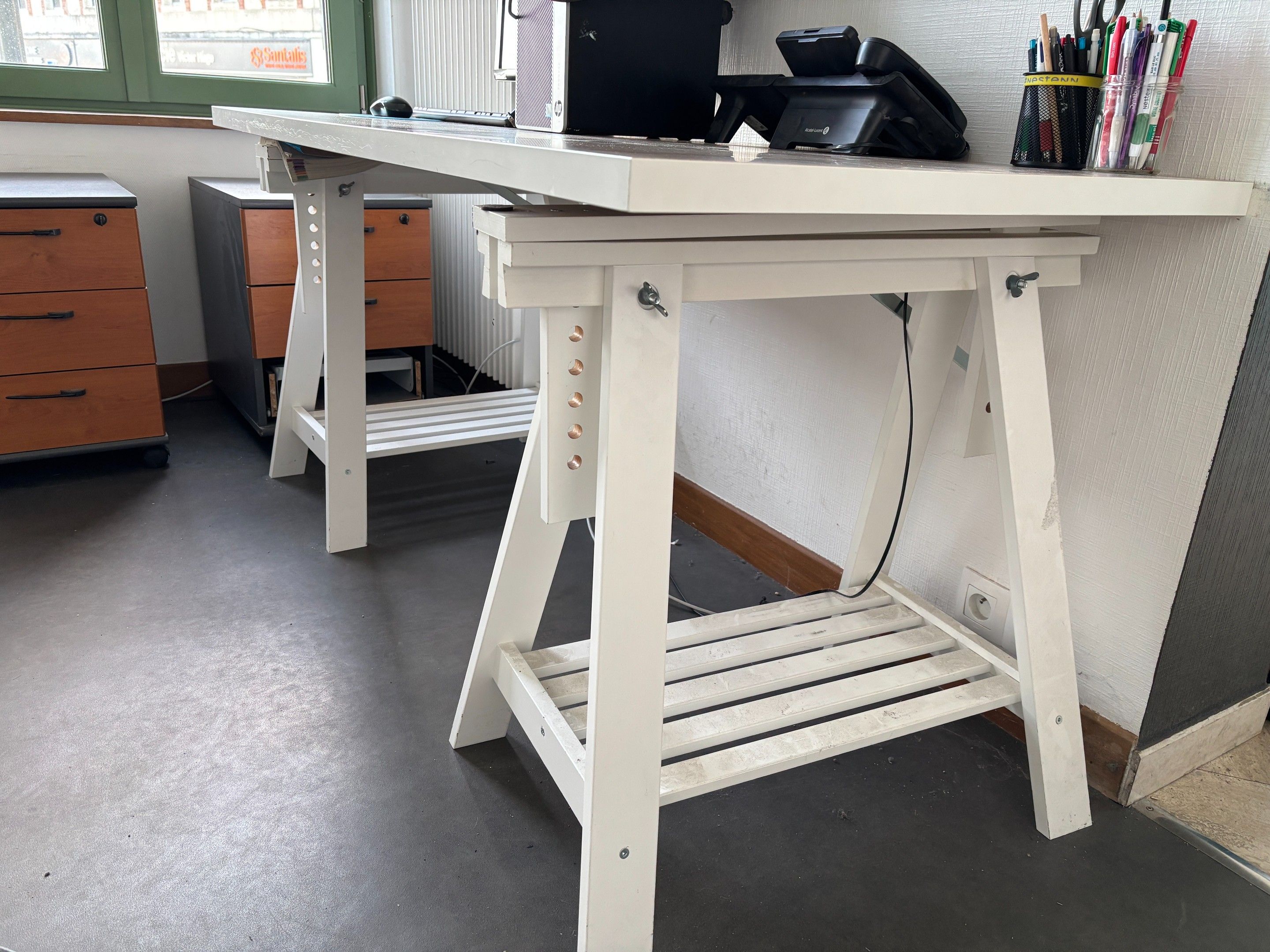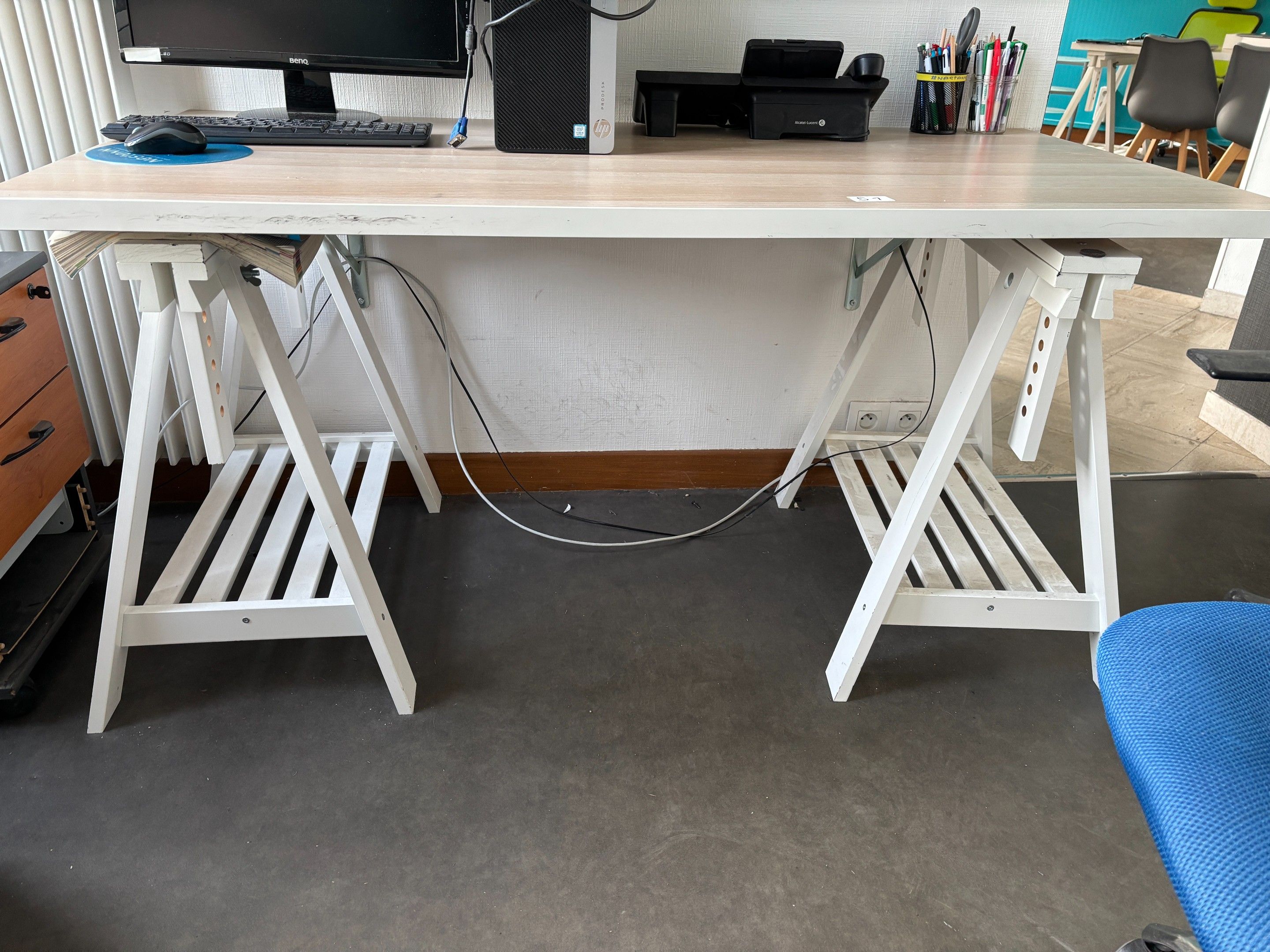 1 Melamine desk with two trestle legs