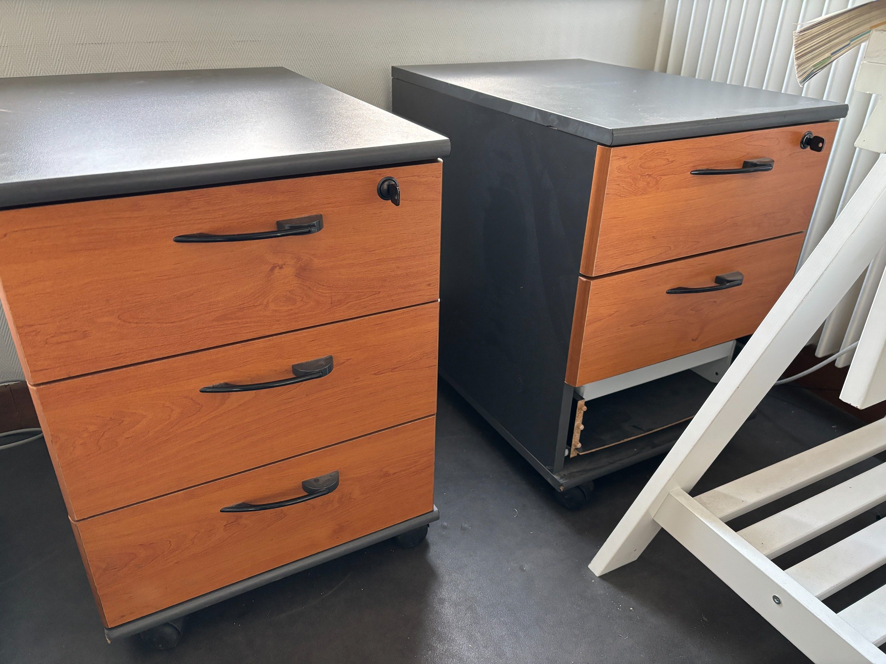 2 Melamine pedestals with three drawers