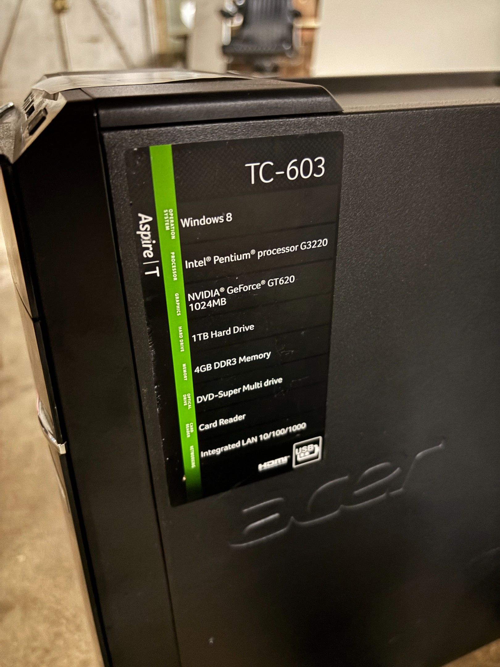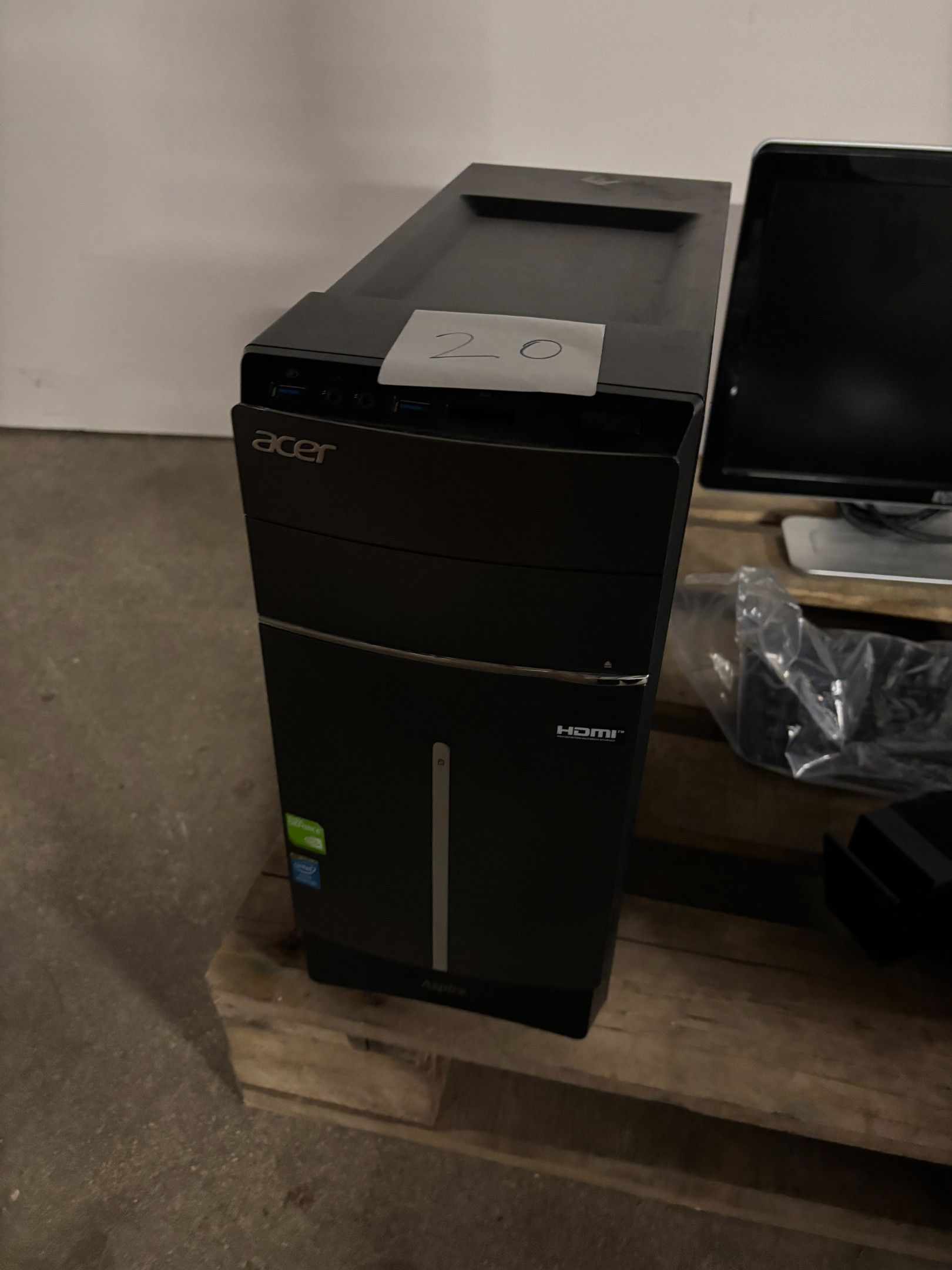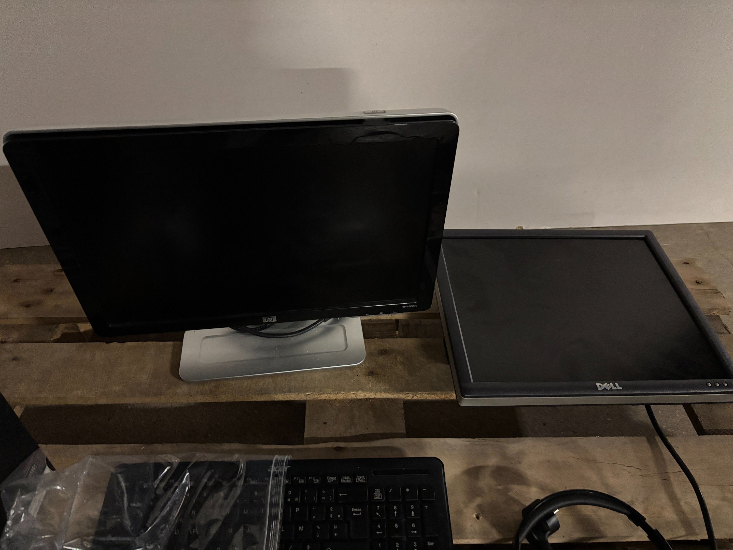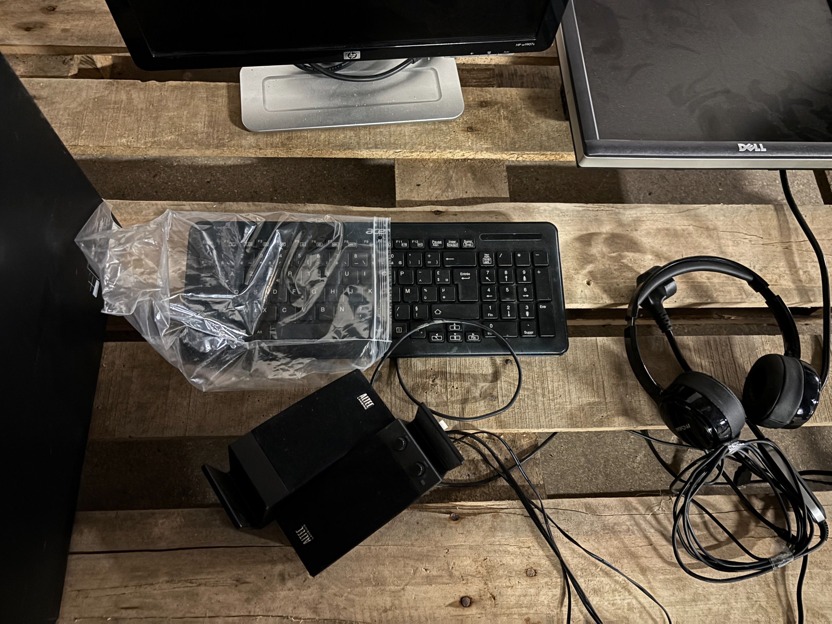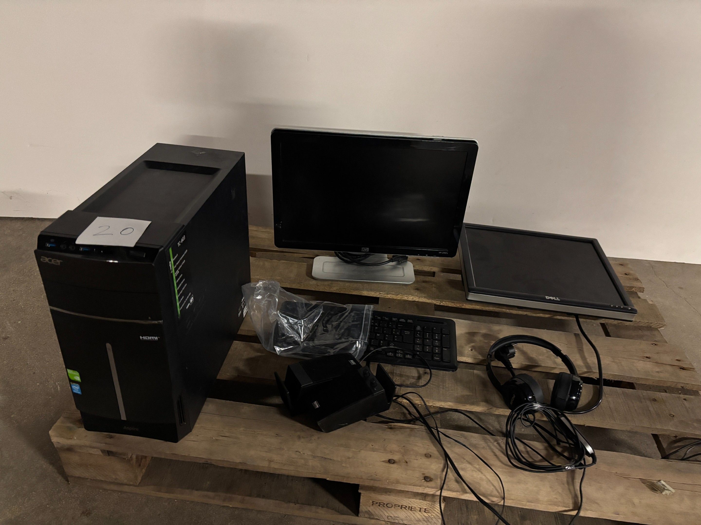 SUITE LJS SARL NATALEX - 1 Computer consisting of an HP monitor, a Dell monitor, an Acer tower, a headset and a keyboard