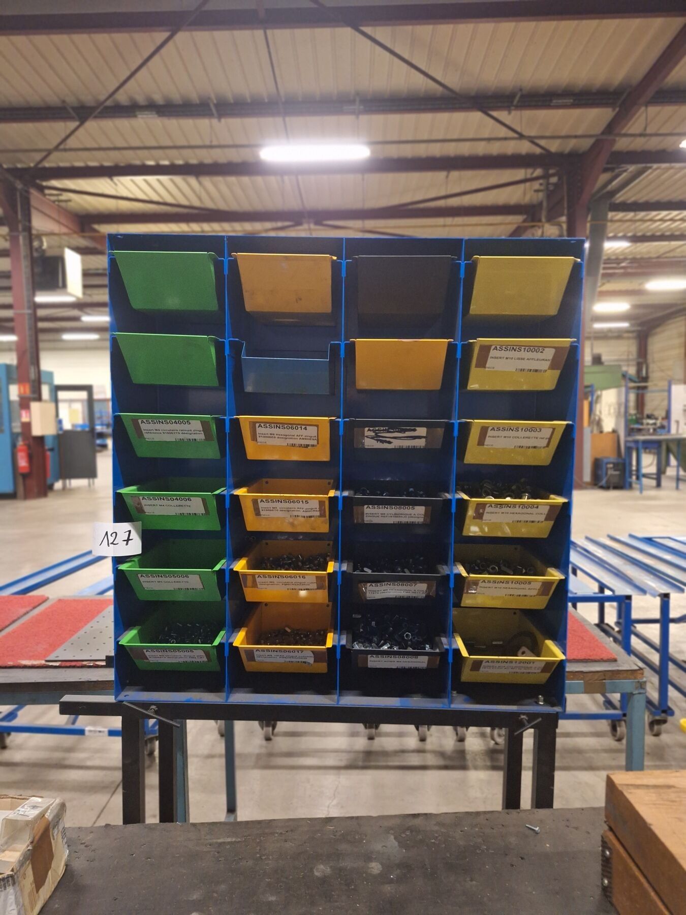Metal cabinet containing spout trays and set of inserts
