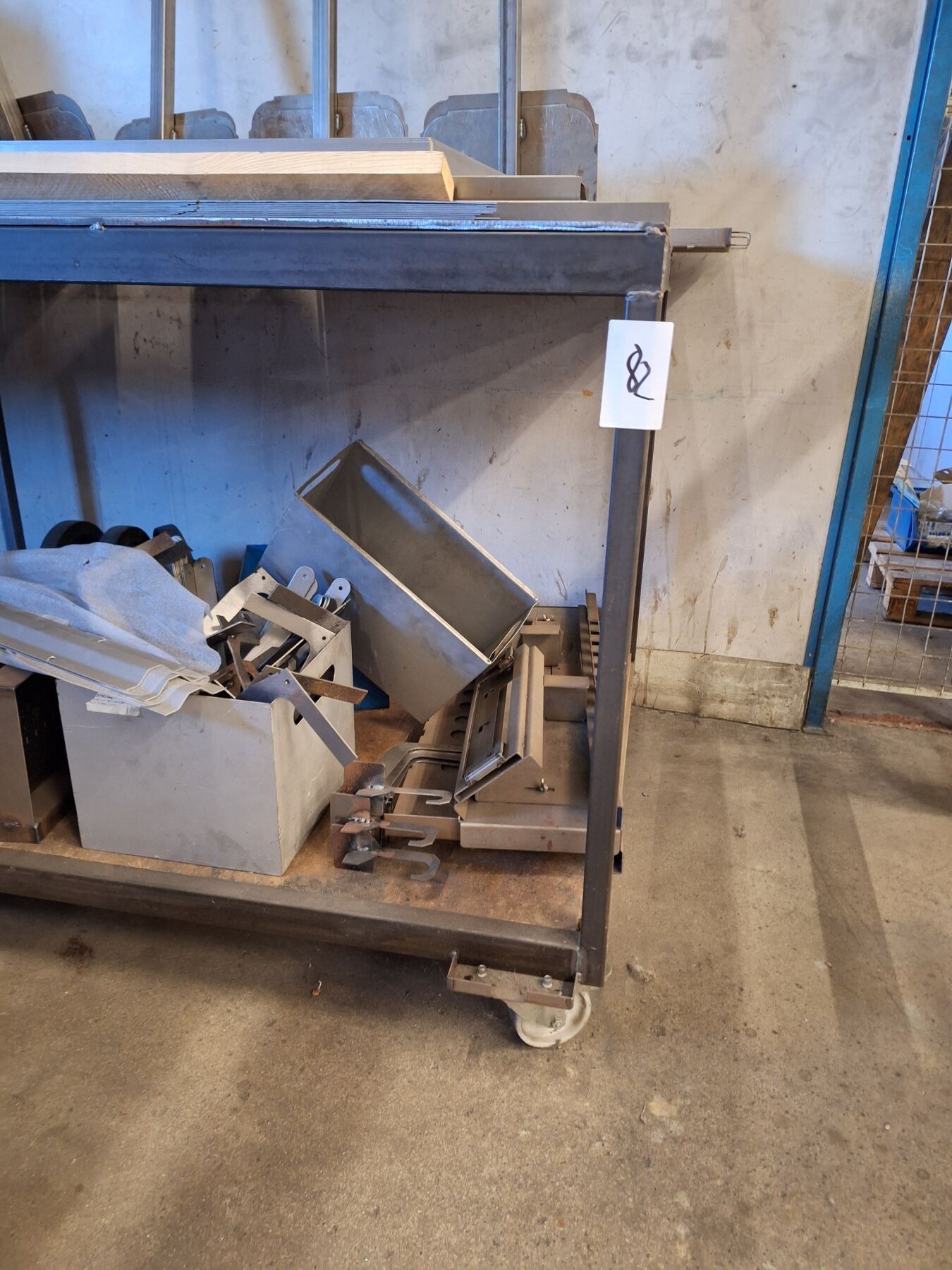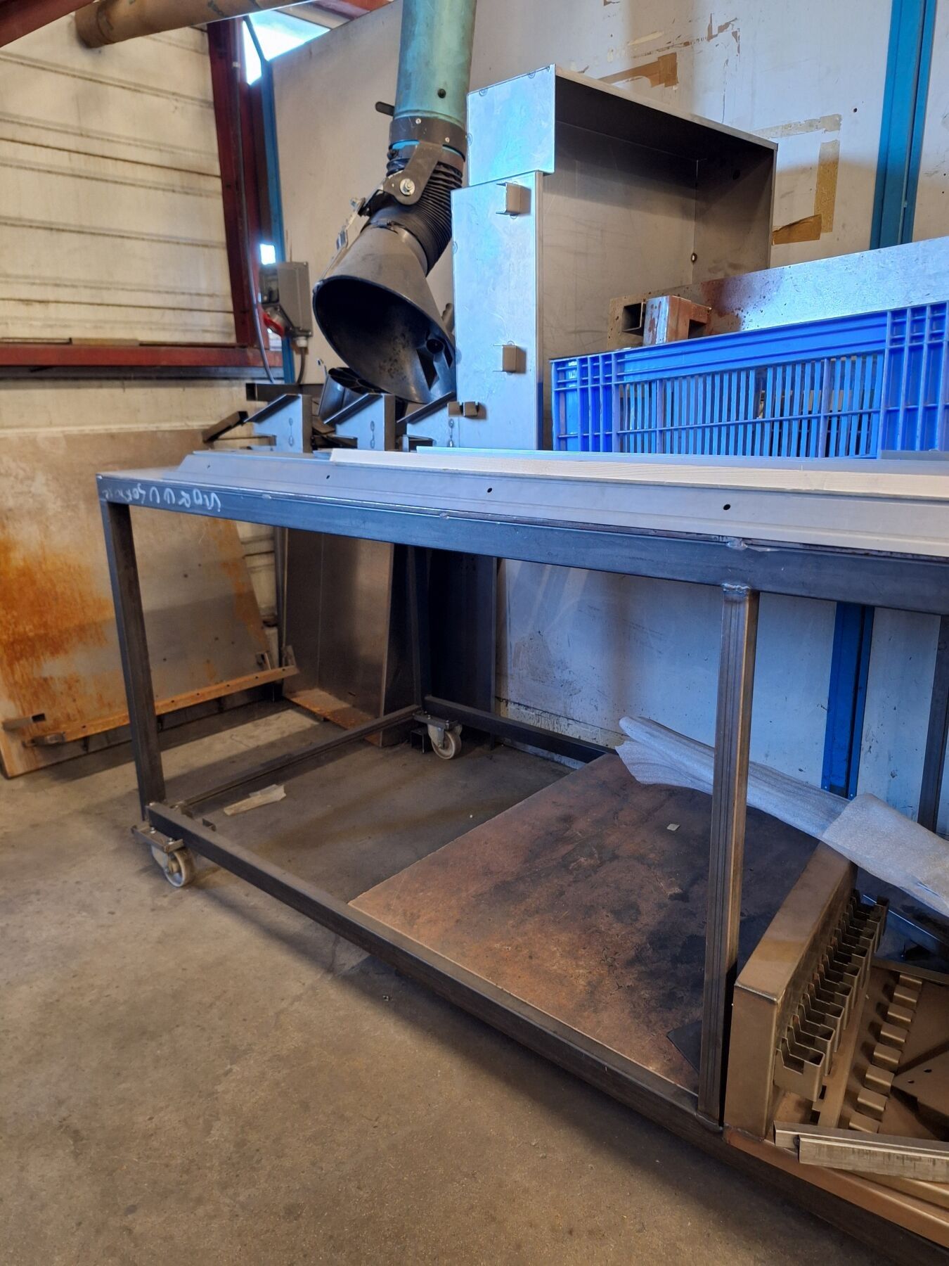 Metal table on wheels W 2.96 D 0.94 H 0.94