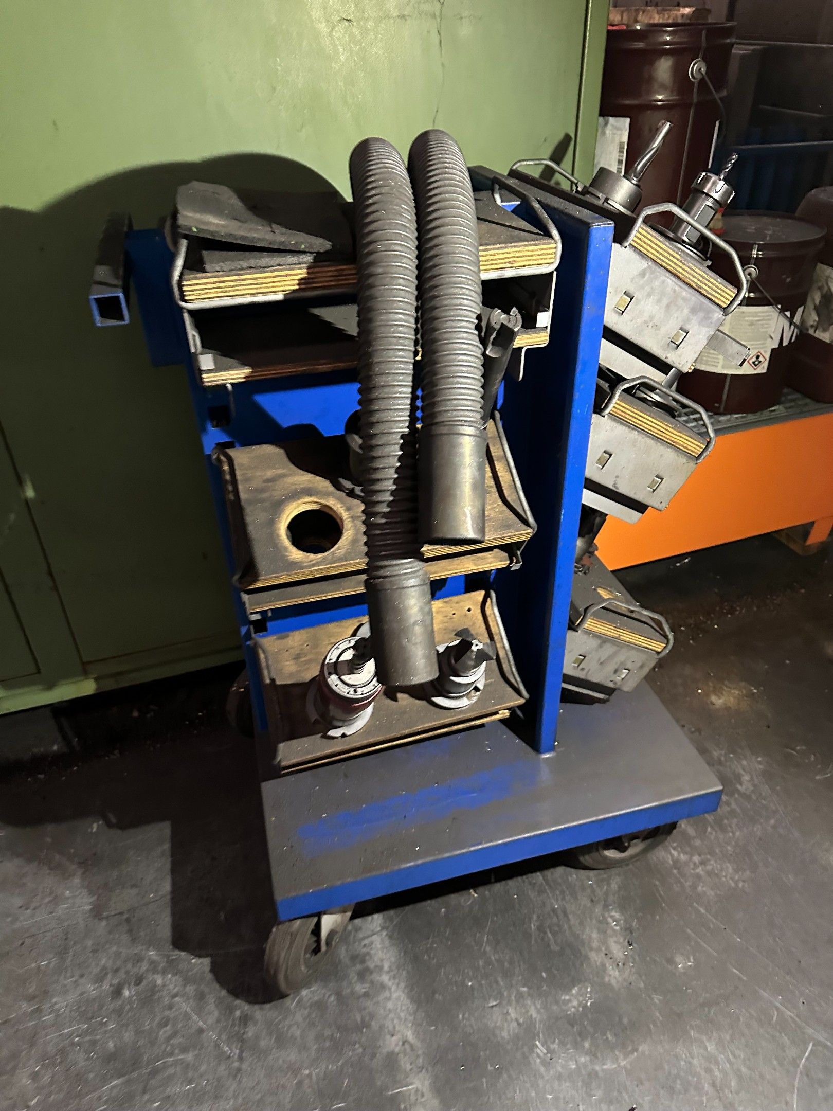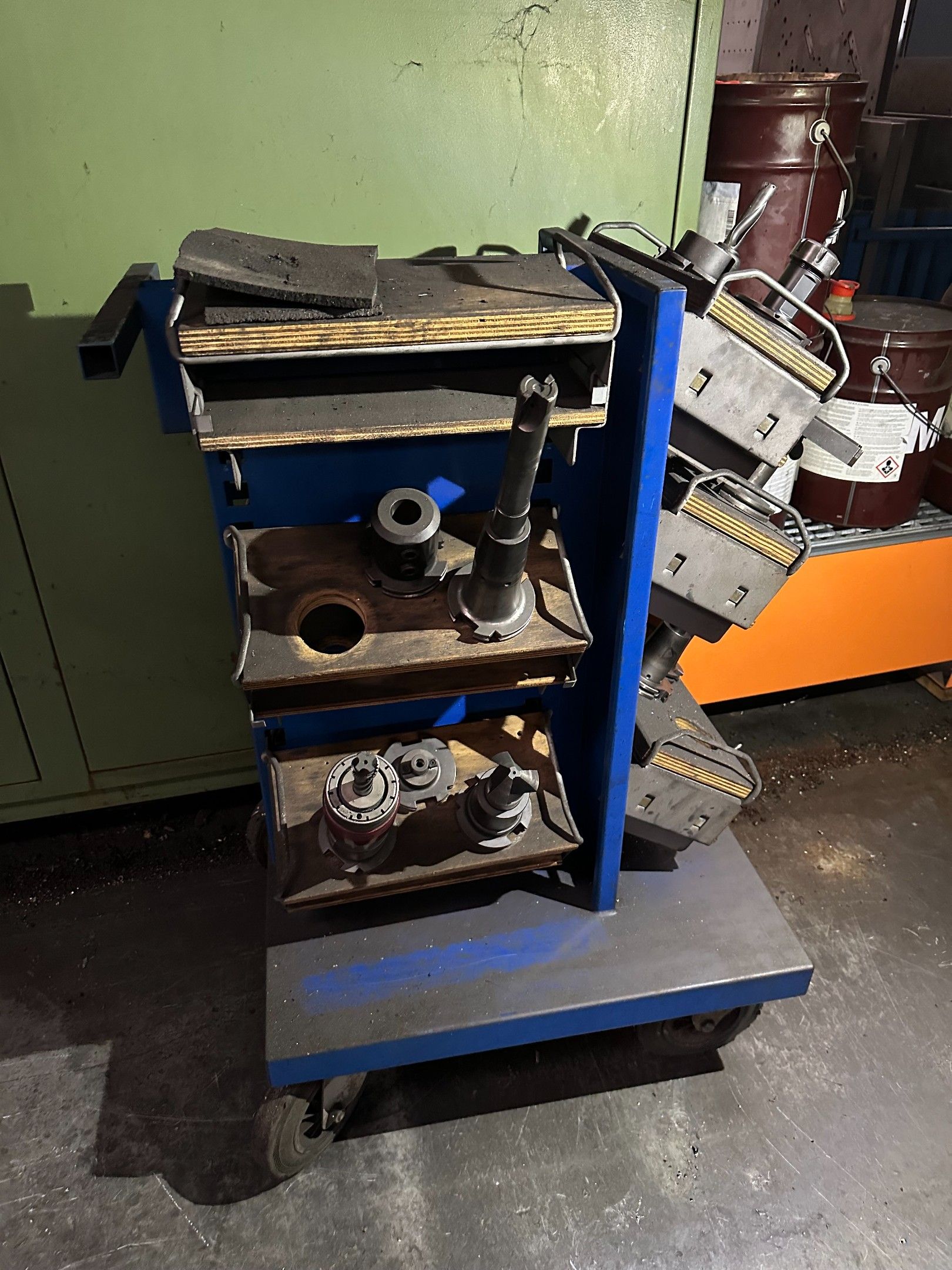 two mobile workbenches, filing cabinet, trolley, tools for t…