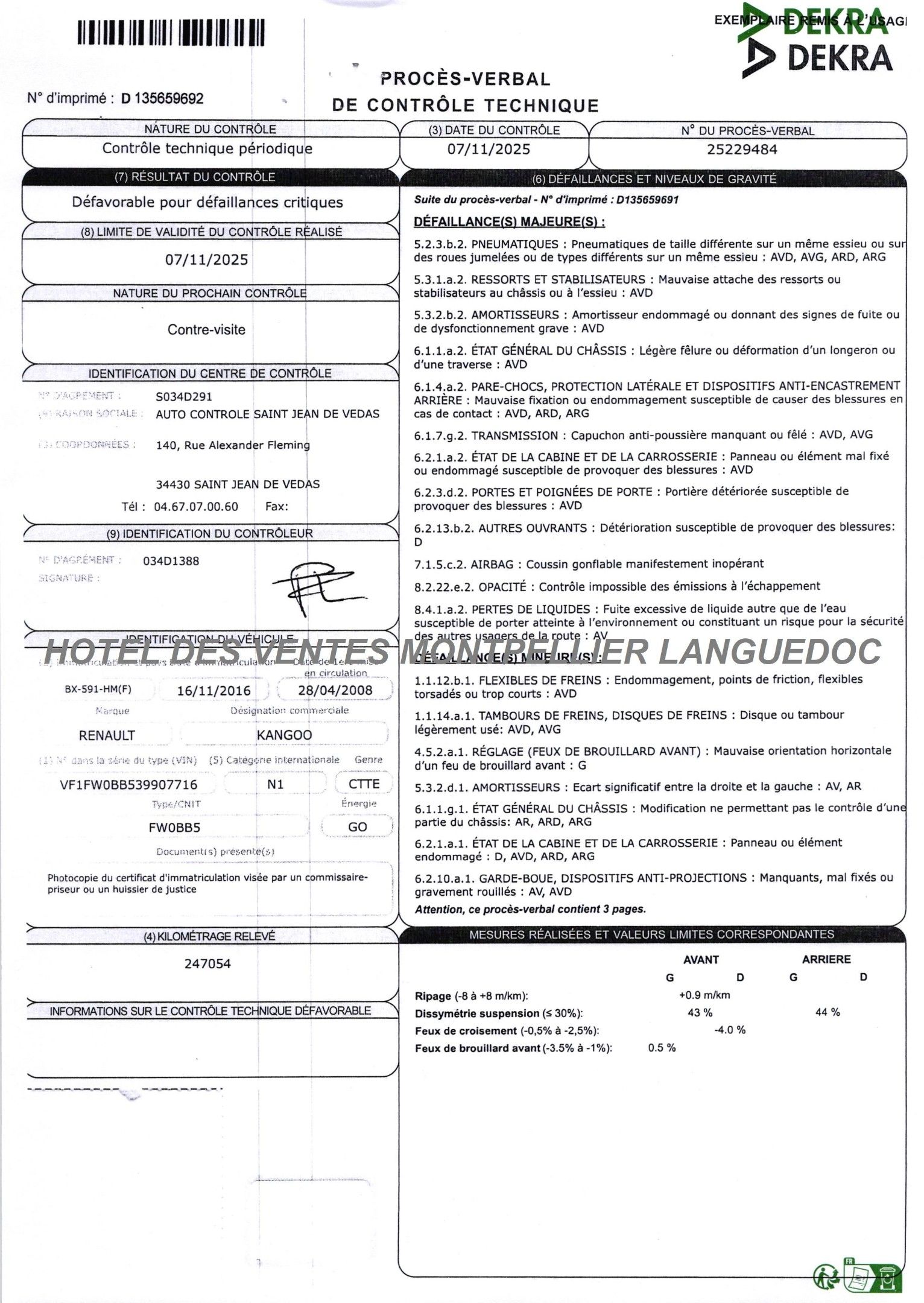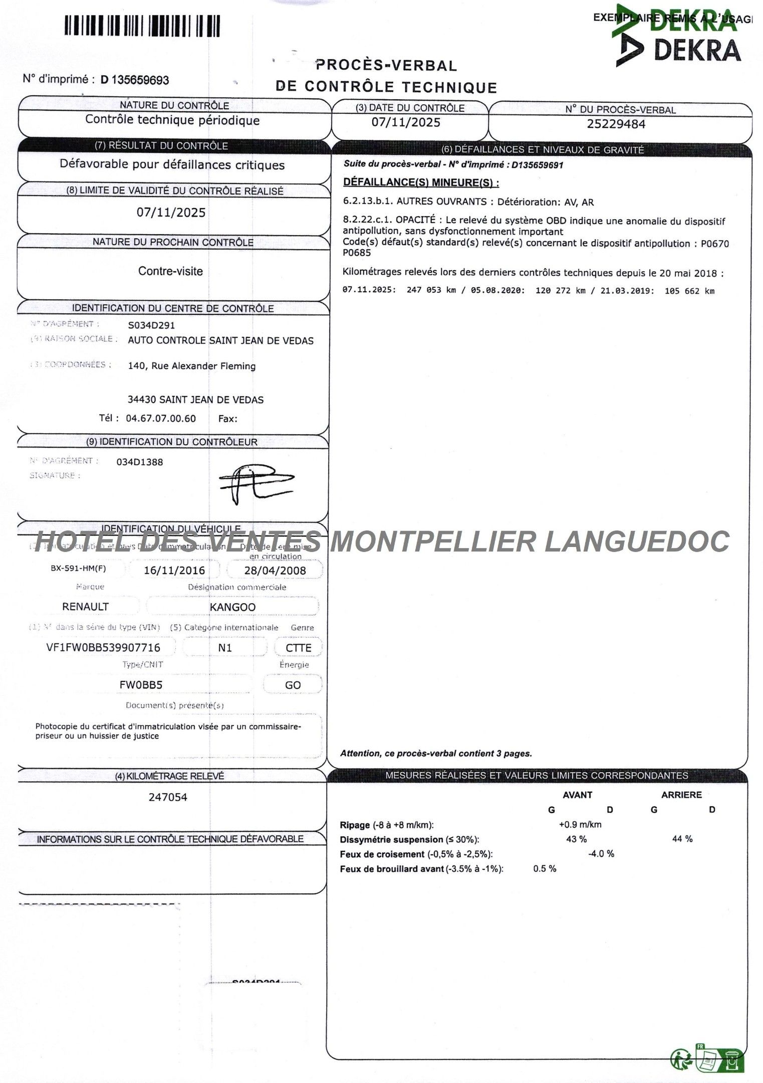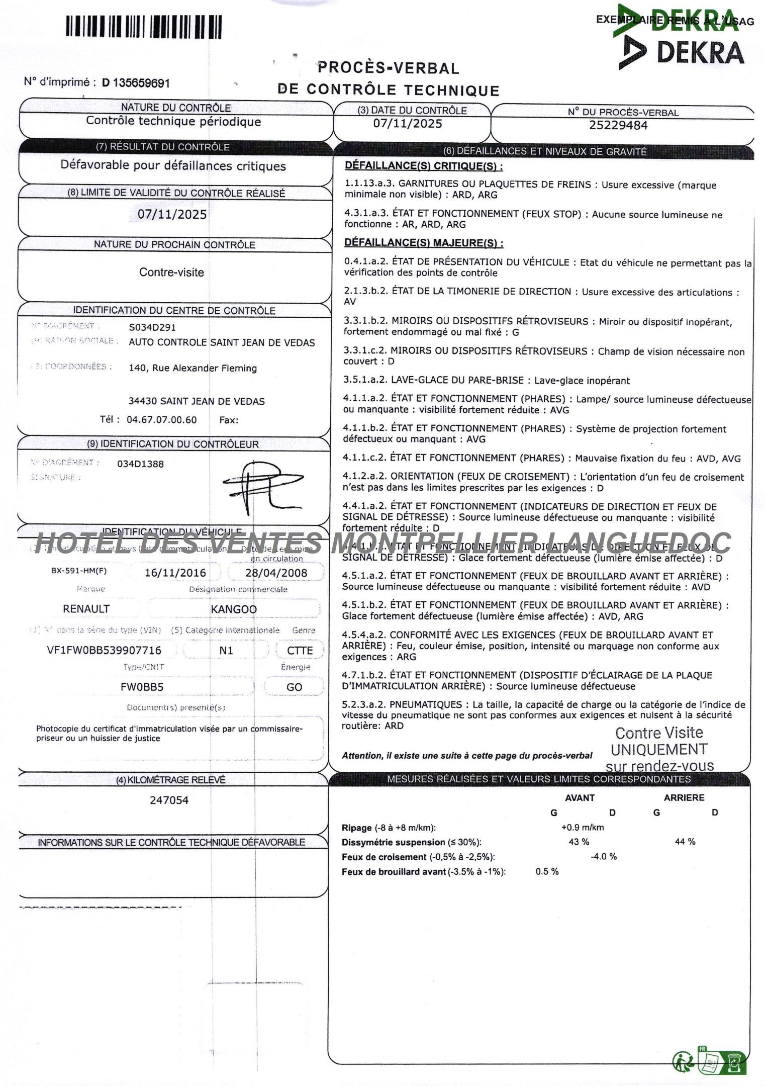 CTTE FOURGON RENAULT Model : KANGOO 1.5 dCi 85 cv Year : 2008 BX-591-HM Manufacturer type : FW0BB5 Serial number : VF1FW0BB539907716 Date de 1ere mise en service 28/04/2008 Energie : GO Puissance : 6 CV Kilomètres Compteur non garantis : 247054 Contrôle Technique : Oui TVA récupérable Sans Carte grise originale