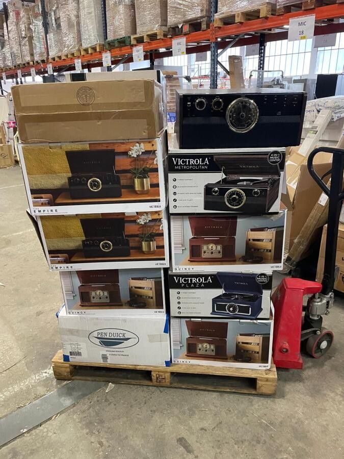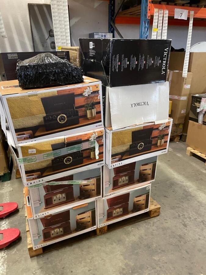 9728-120 / LOT of about 20 VICTORLA vinyl turntables - SOLD AS IS (out of order, incomplete, damaged, or as new with defect) - Various models (see photo for lot details) - NO CLAIMS POSSIBLE