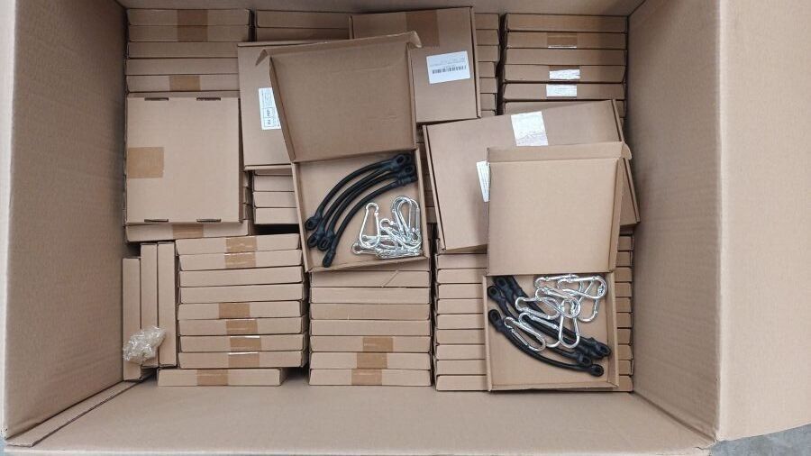 9880-153 / 2 boxes totalling 55 kg of bungee cords with snap hooks /// AS NEW