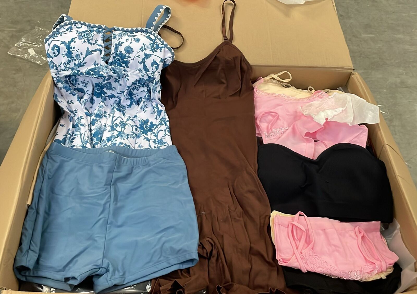 9880-291 / 2 x 73 kg boxes of mixed women's and children's textiles (cardigans, shirts, swimming costumes, bras, dresses, shorts, etc.) /// SOLD AS IS