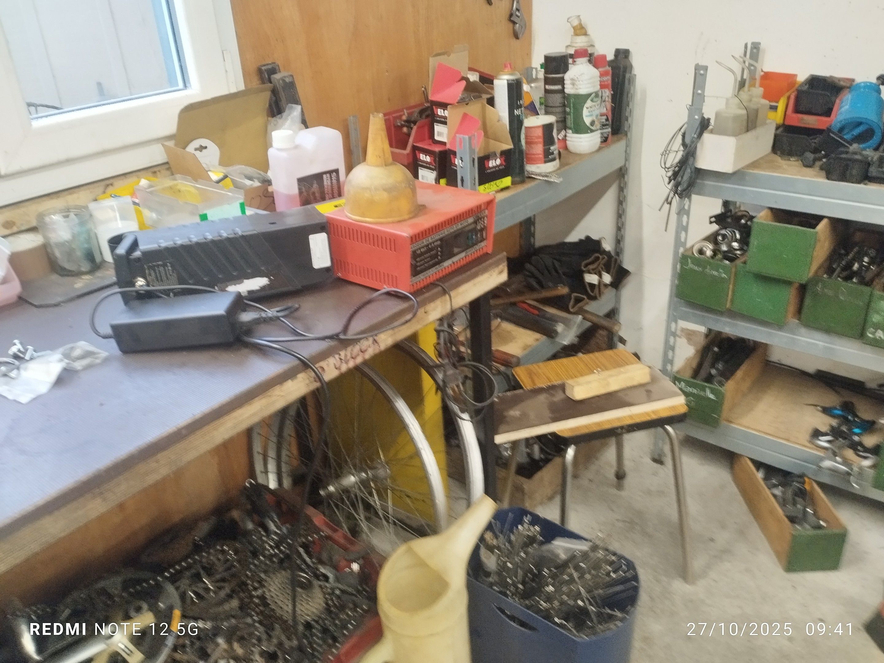 New bicycle parts, toe guards, saddles, pedals, chains, cassettes, anti-theft devices, lights, luggage racks, cranksets and levers, moped parts, small parts.