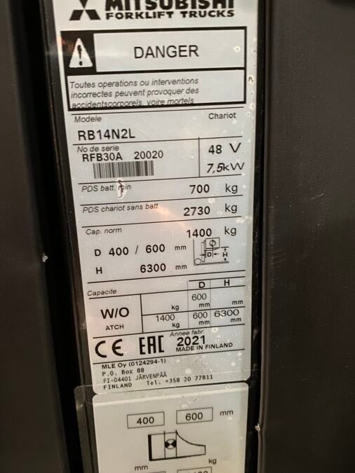 *1 MITSUBISHI SENSIA reach truck Type 03 EPZS 0465SC Serial number: 0201357822 from 2021