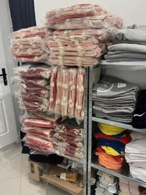 STOCK of around 450 items of women's/men's/children's ready-to-wear clothing including: T-shirts, sweatshirts, hats, chokers from XS to XXL for adults and children aged 6 to 14.