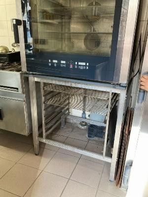 UNOX XBC 605 electric oven, year 2010, on stainless steel rack with 8 decks