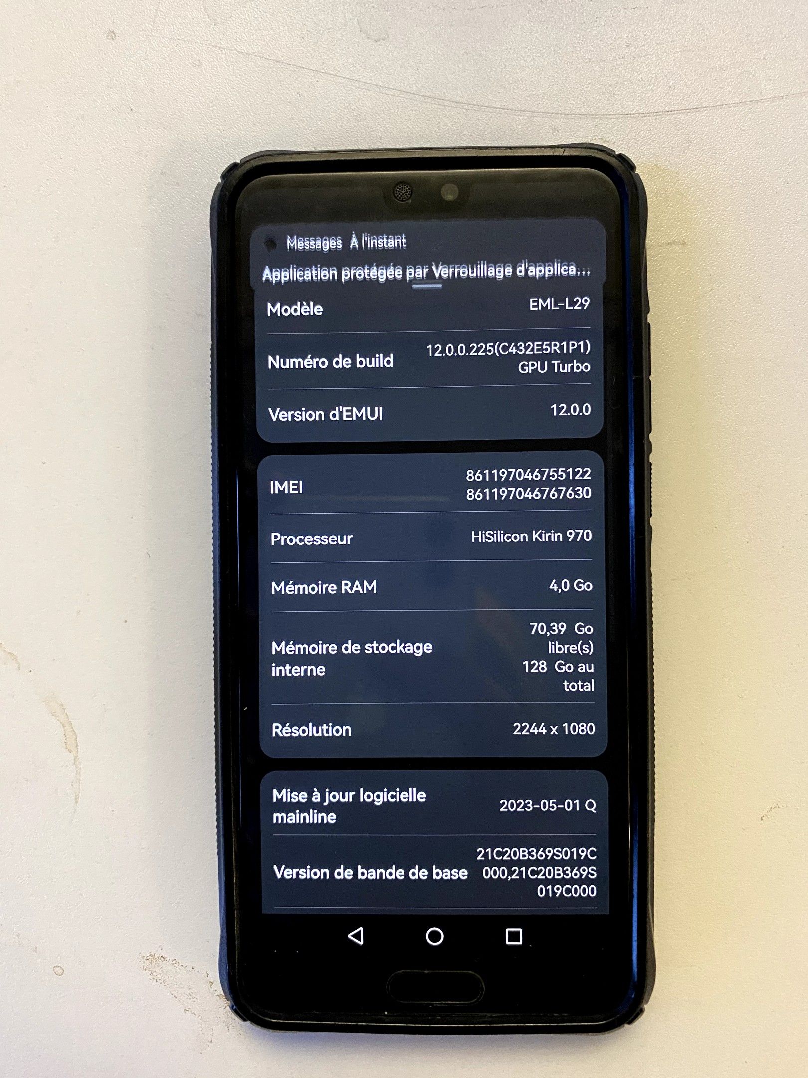 1 Huawei mobile phone, model EML L29, 128GB capacity