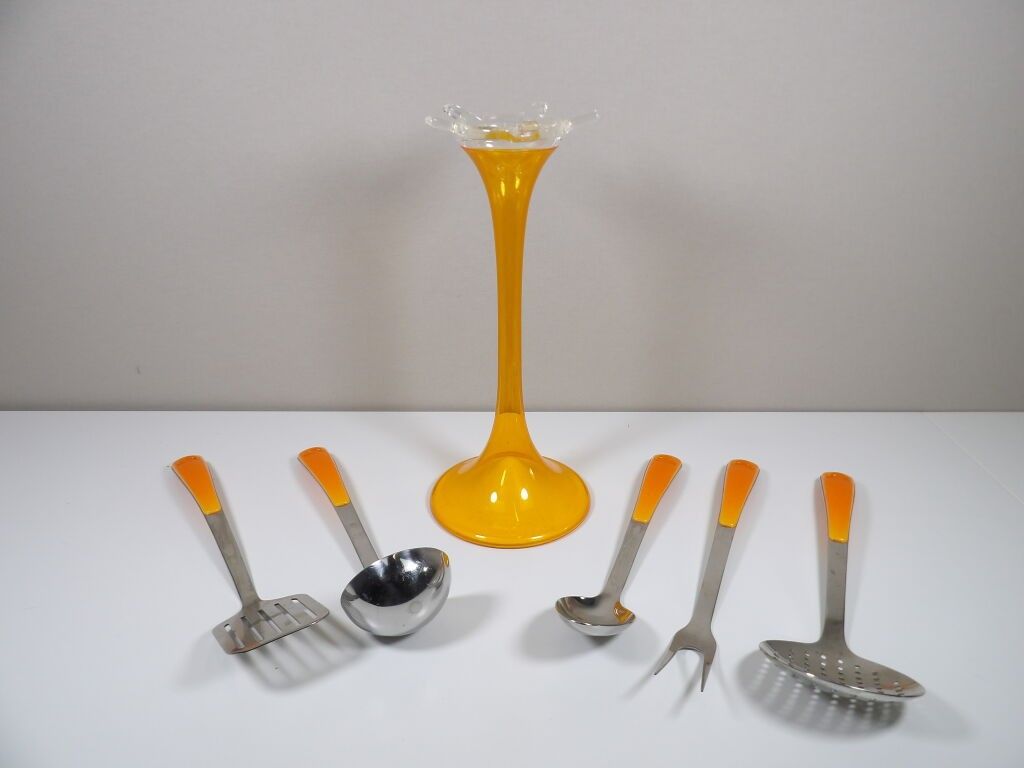 KITCHEN - GUZZINI cutlery set - Orange consisting of a tulip-shaped utensil holder and 5 items