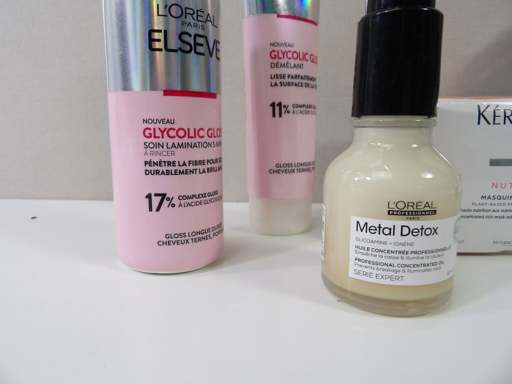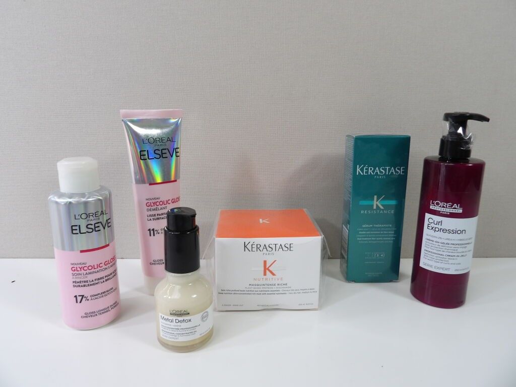 Set of 6 HAIR CARE products (new and used): KERASTASE Masquintense riche and serum thérapiste, L'Oreal crème gel, soin lamination, démêlant and juile concentrée.
