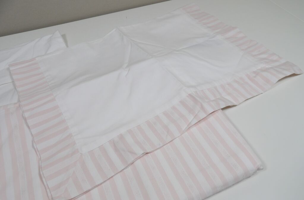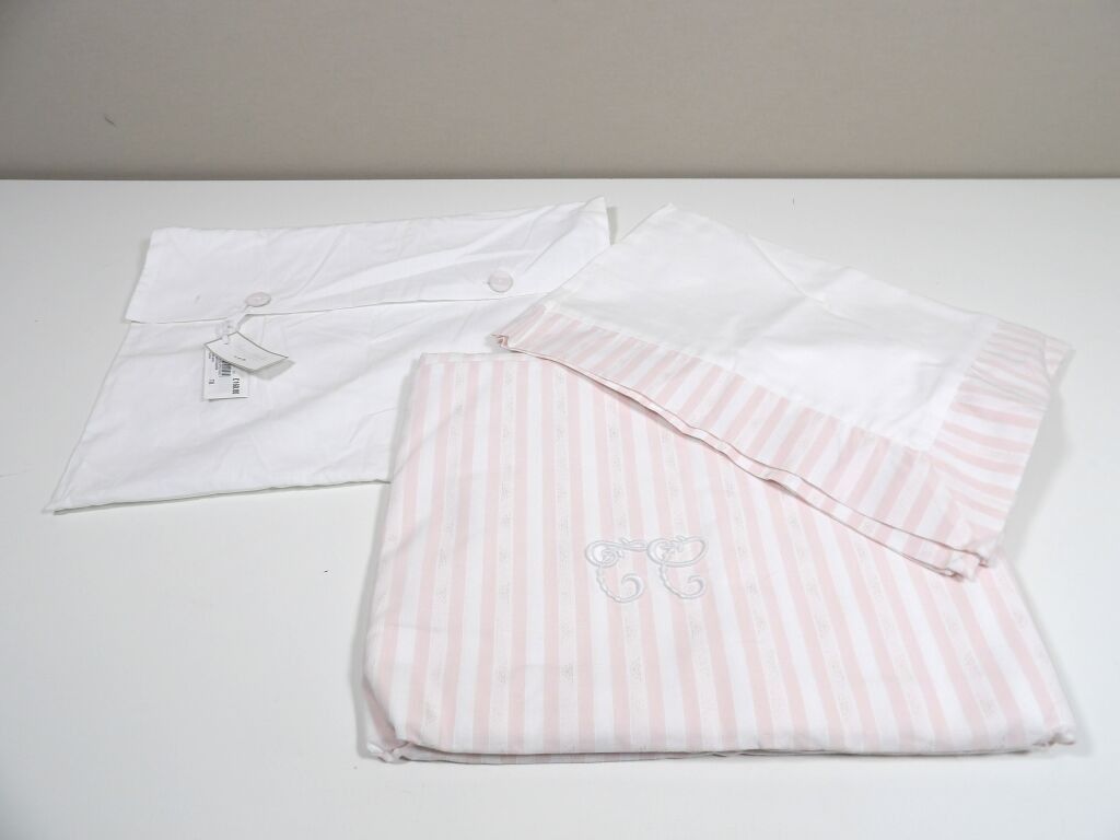 Garda pale pink bed set consisting of a duvet cover and a pillow case in cotton poplin, quilted and threadbare. Duvet cover dimensions: 140 x 90 cm. Pillowcase dimensions: 47 x 66 cm. The Garda line: an emblematic line that symbolises the spirit of Tartine et Chocolat. Chic, elegant stripes combined with the pastel colours of childhood, a finely embroidered crest and soft, tender fabrics. Made in Portugal.