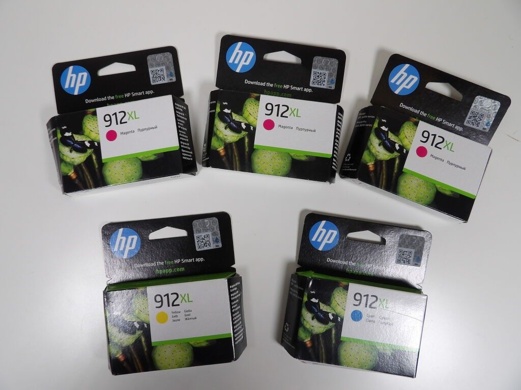 INK CARTRIDGE : Pack of 5 HP ink cartridges - 912 XL : 3 Magenta / 1 yellow / 1 ciano NEW
