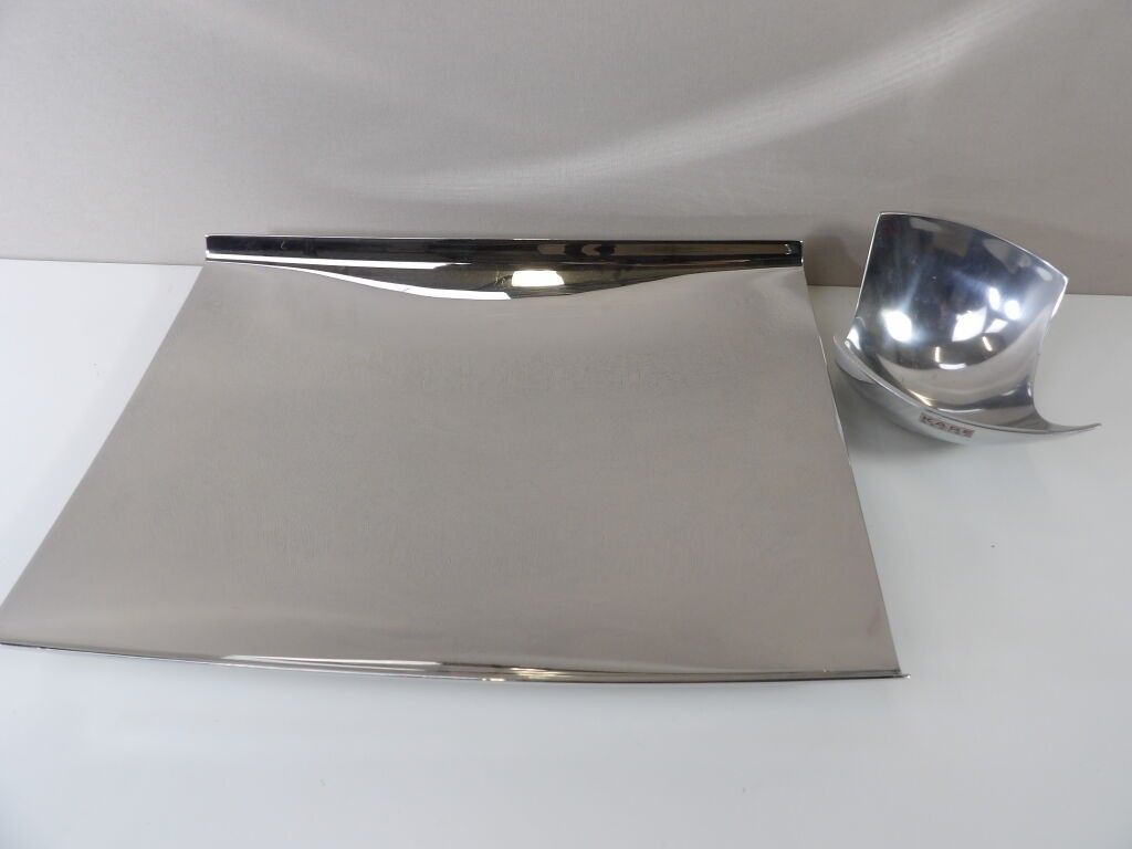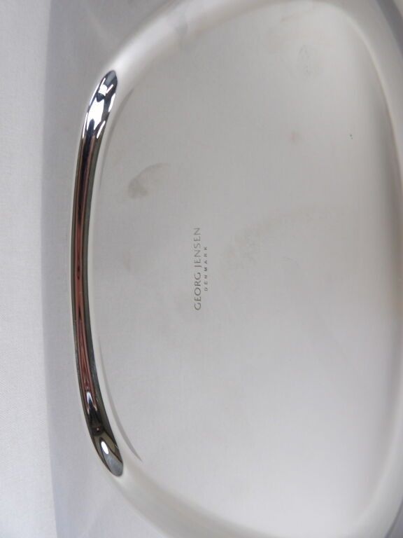 Georg Jensen (Denmark) mirror polished silver plated fruit dish or basket, 46.5 x 356.5 cm, scratched, with a Kare design pocket dish, second hand.